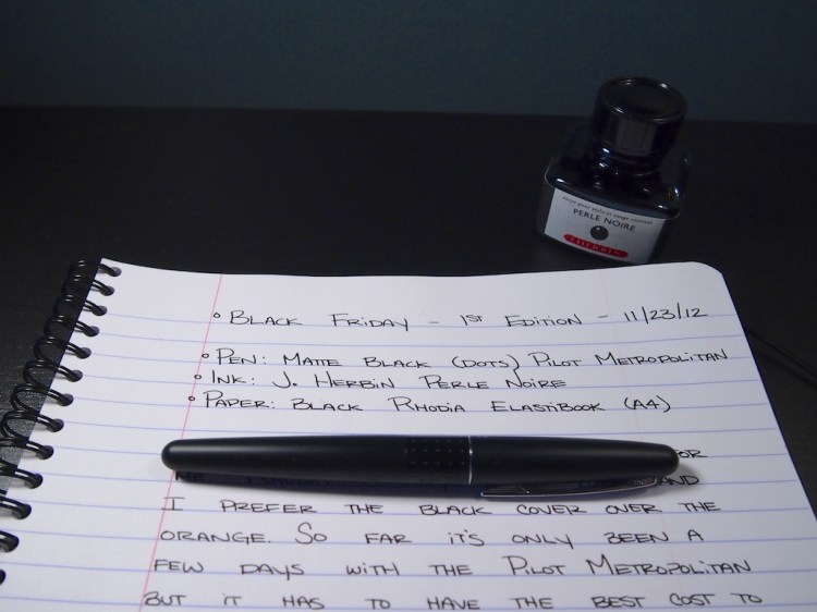 One thought on “New Feature – Black Friday, 1st Edition – Pilot Metropolitan, J. Herbin Perle Noire, Rhodia Elastibook”