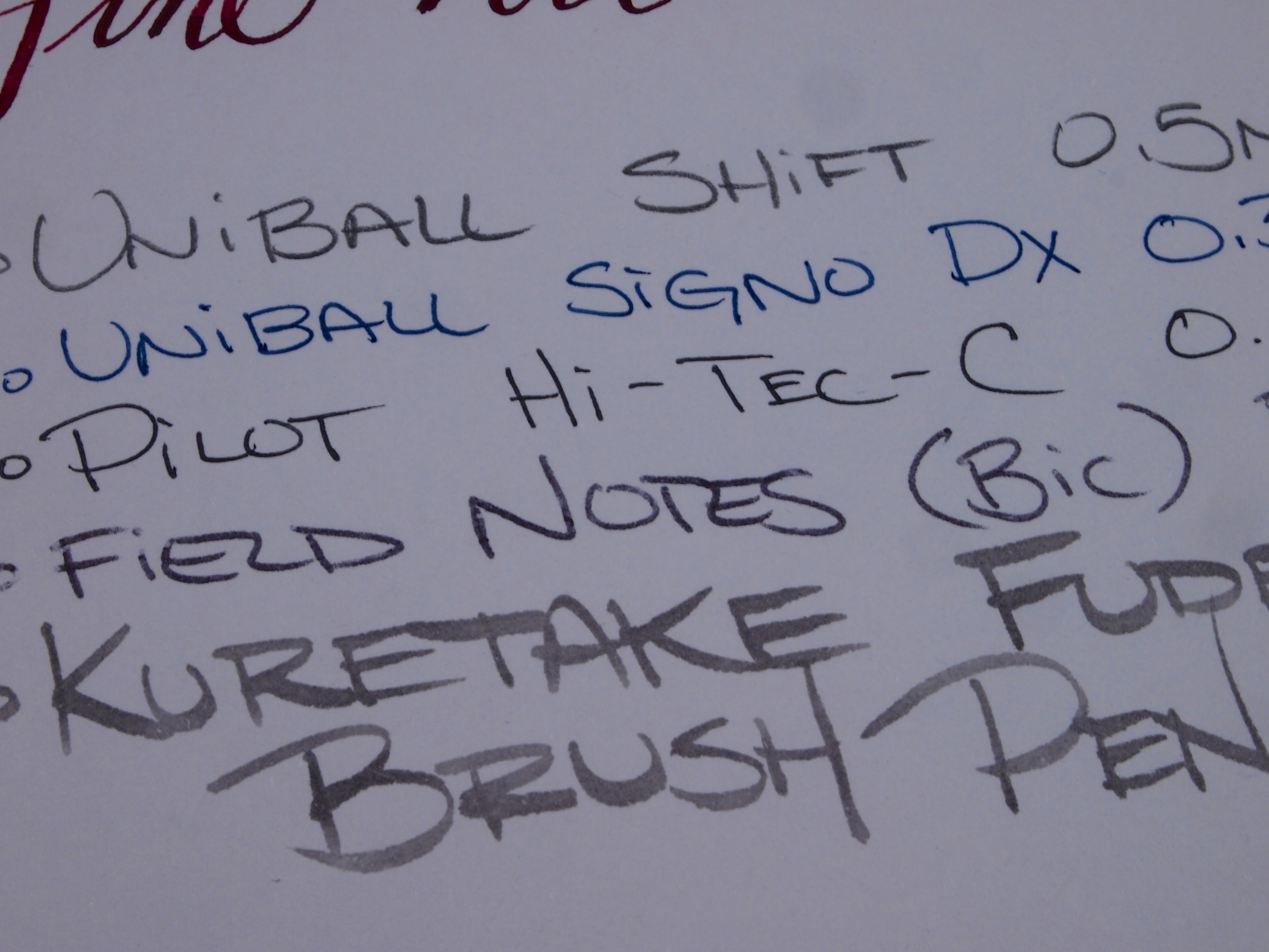 Notes: When GouletPens.com announced these notebooks, I was intrigued. They were really cheap, and usually Goulet Pens does not steer me wrong with fountain pen friendly products. In this case, I disagree with the “friendliness”. When I got this pad, there was one thing I noticed right off the bat. It’s a pretty weird shape. I don’t know if I would consider it “handy” like the name says. If it was called the “odd” notebook, I think I might agree more with the nomenclature. I could get past the shape if the paper was great. Turns out, it wasn’t. I found it to be very toothy, even with nibs that perform very well on a wide range of papers. The paper is pretty thin too, making even Diamine Grey show through to the back of the page. The construction of the notebook is pretty decent, and it does lay almost all the way flat, which isn’t always the case with stitch-bound notebooks. The only decent writing experience on this paper was with a Bic ball point pen, which I normally don’t use unless I have to. If you happen to be someone who likes a LOT of feedback from your paper, then maybe check out Banditapple Carnet. If you’re like the majority of fountain pen users who like a smooth, nice paper, it’s best to steer clear. I decided to get scientific with this review. The last two picture I took through a loupe, and the difference in lines between the Banditapple Carnet and Rhodia are definitely noticeable.
