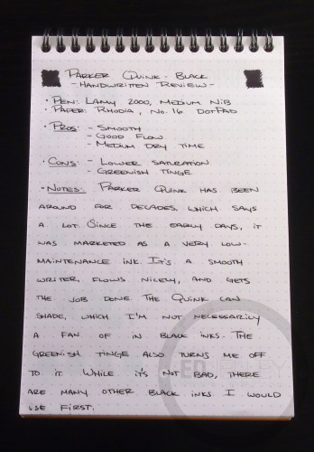 Parker Quink in Black – Handwritten Fountain Pen Ink Review