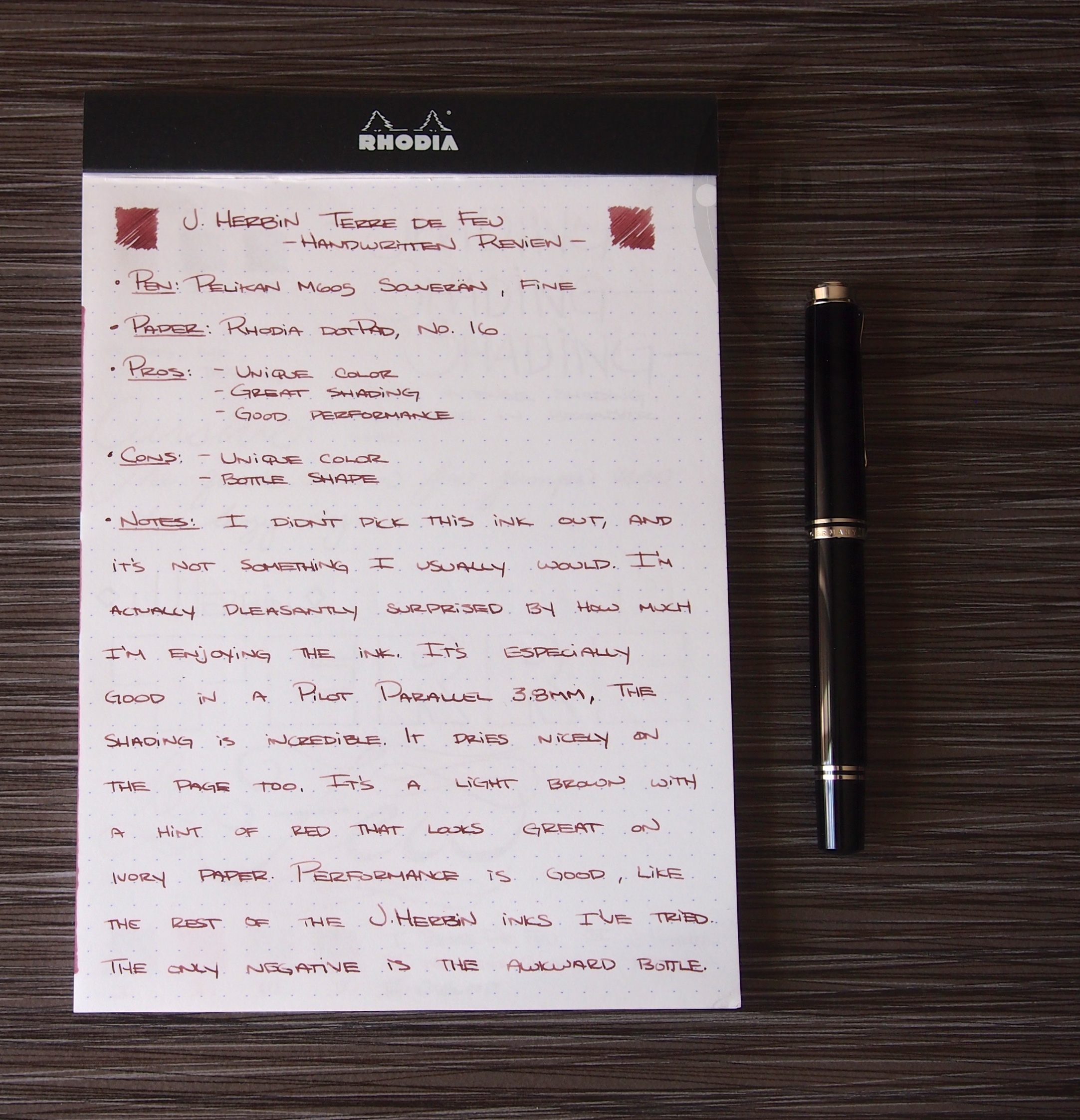 J. Herbin Terre de Feu Fountain Pen Ink Review 9PenPelikan Souveran M605 – Fine nib