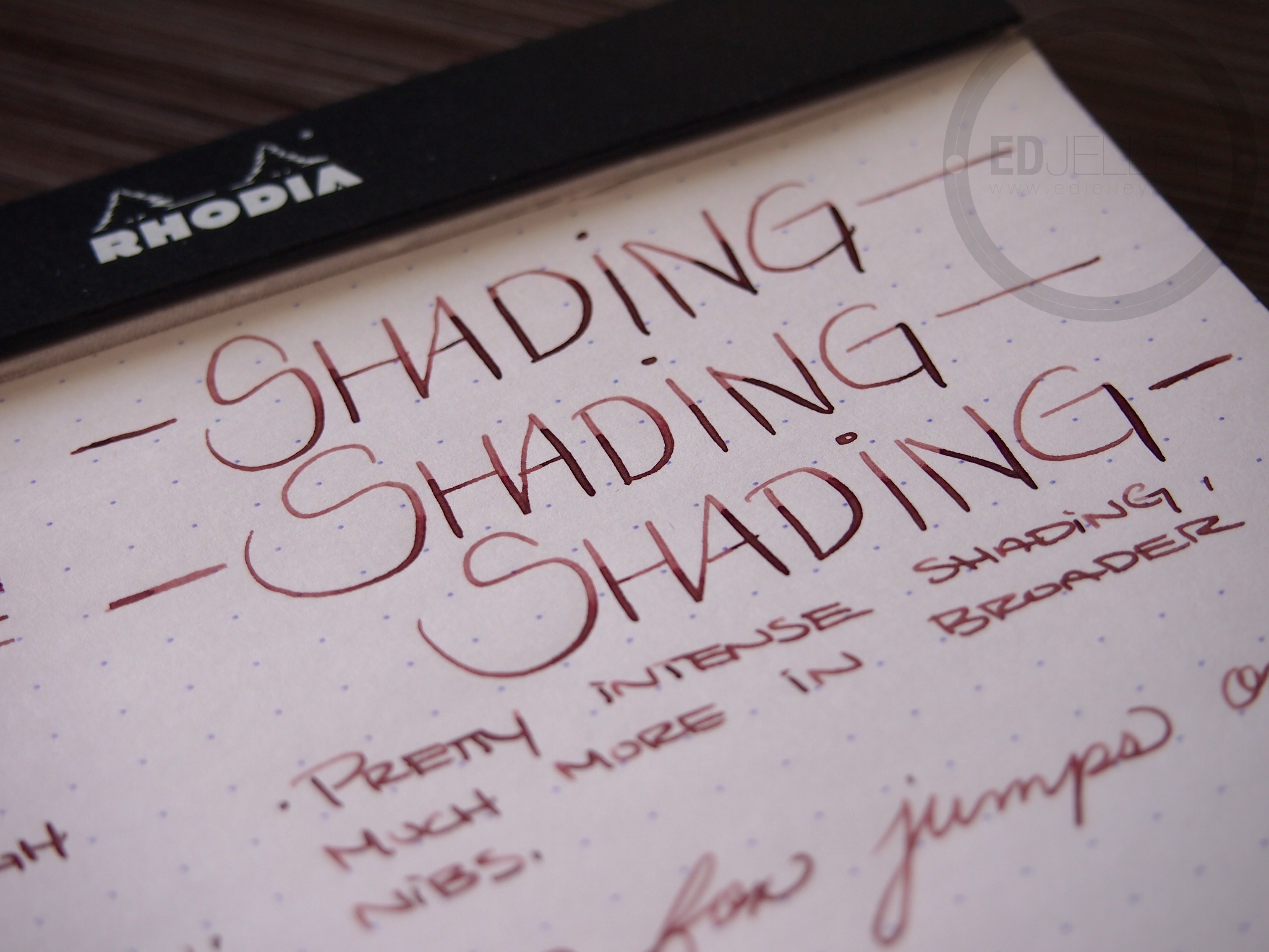 Not as intense as it is in a broader nib, but for being in a German fine, this shades quite nicely.