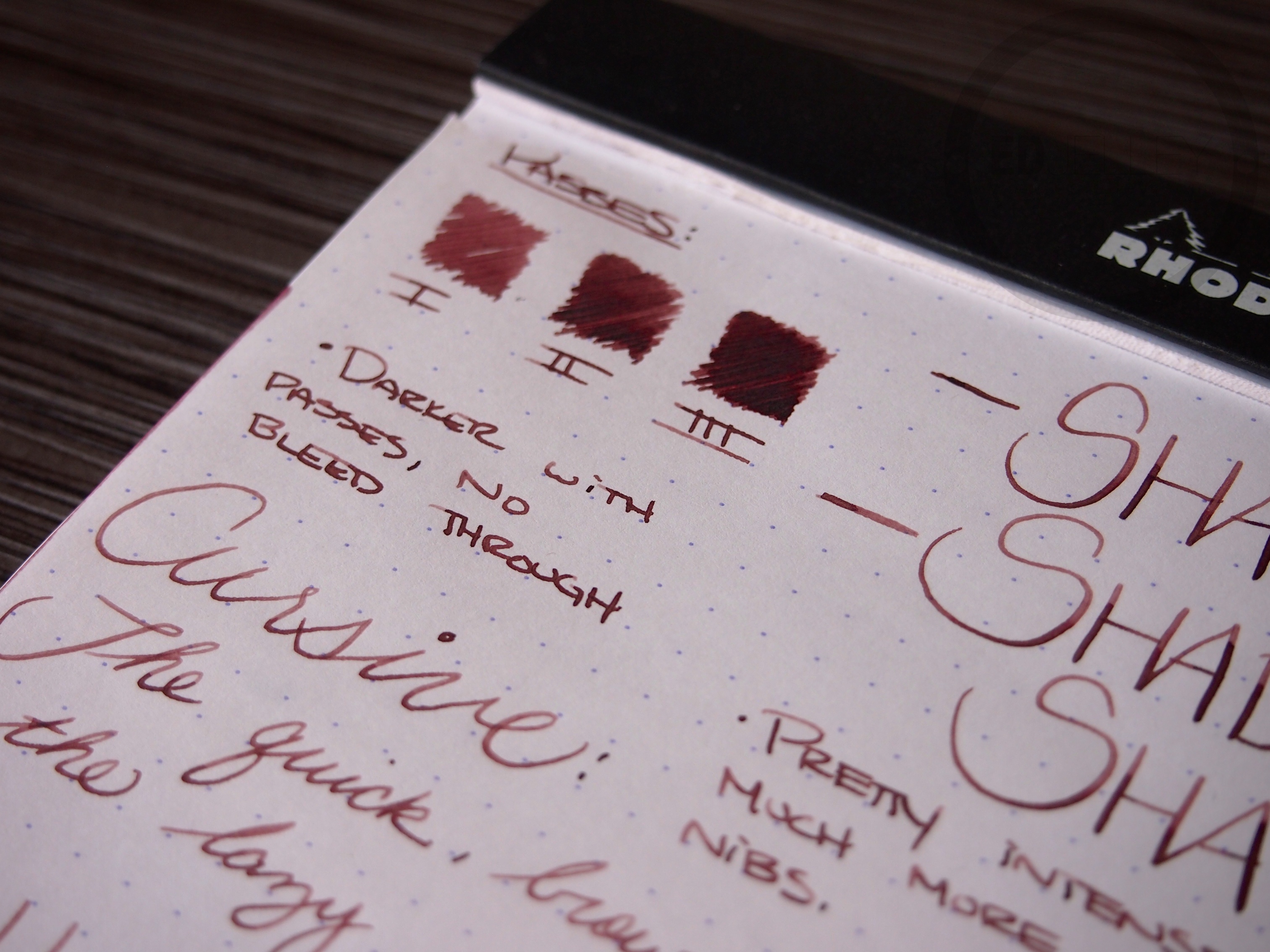 Comparison inks. If anything, it’s closest to the Diamine Oxblood, but much, much lighter.