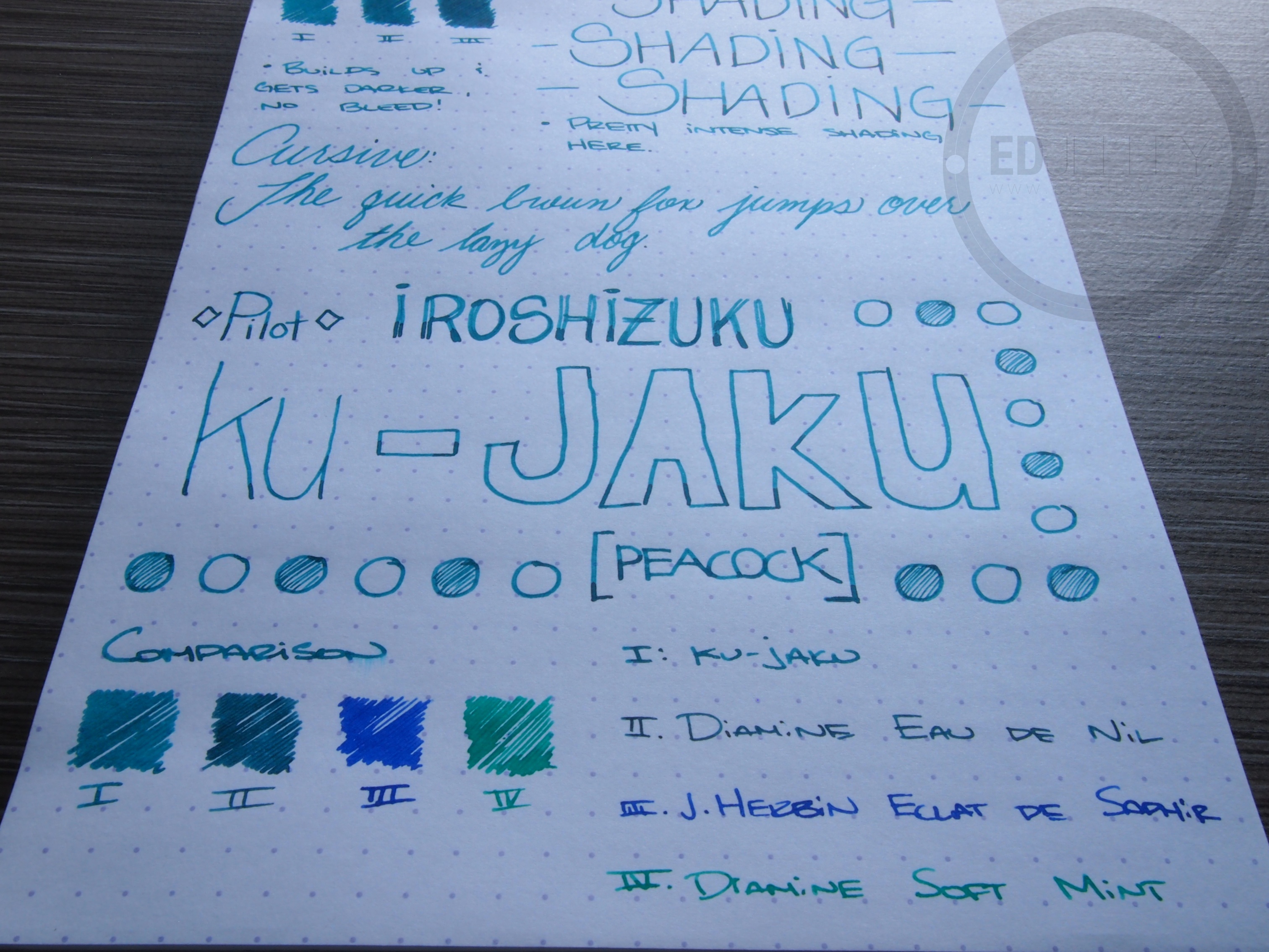 6 thoughts on “Pilot Iroshizuku Ku-Jaku – Handwritten Ink Review”