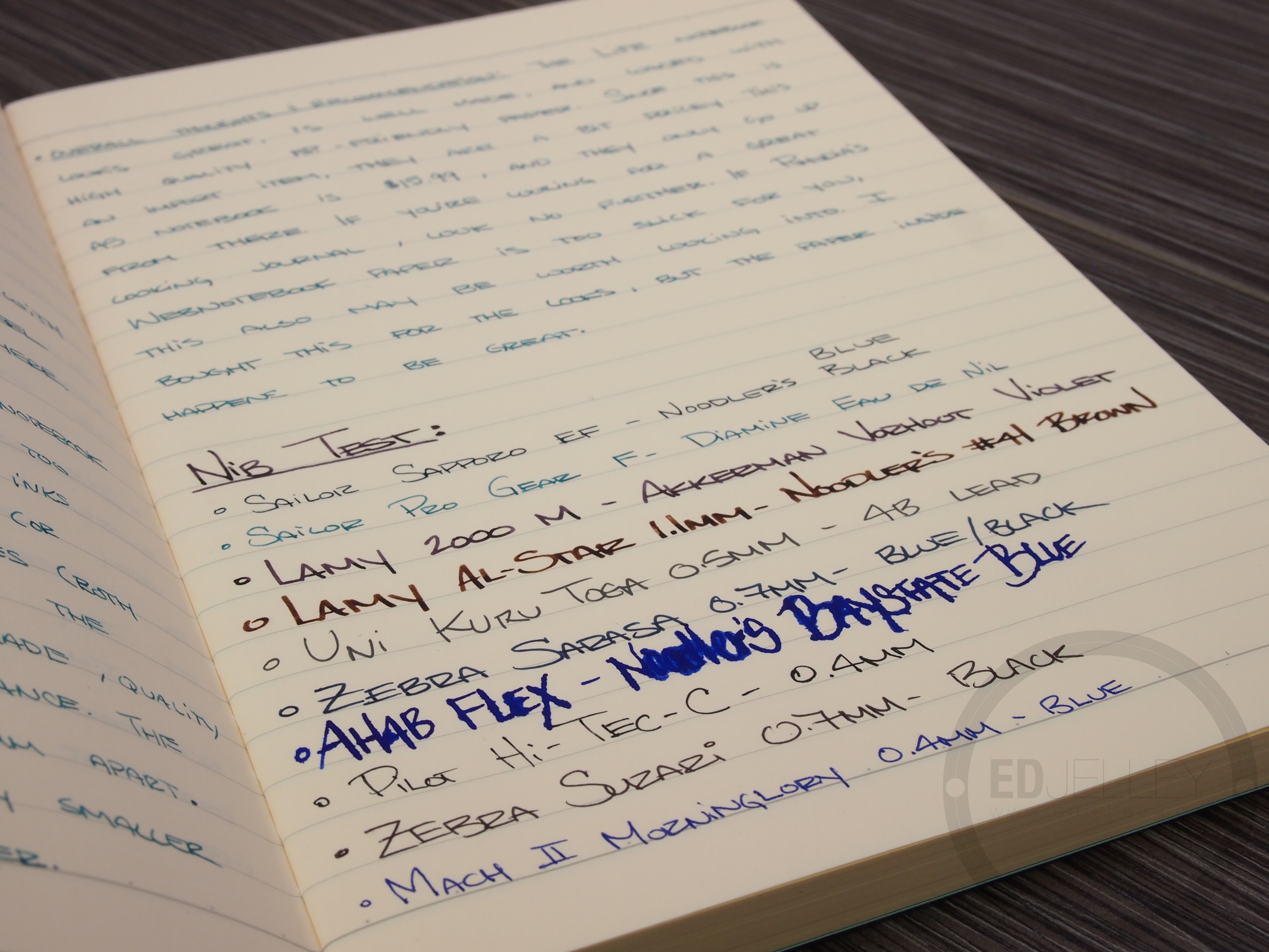 The LIFE Noble notebook looks great, is well made, and loaded with high quality fountain pen-friendly paper. Since this is an imported item, it’s a bit pricier than other notebooks of its size. This A5 notebook was $15.99 and larger sizes have larger prices to match. If you’re looking for a great looking journal that you’re going to cherish, it’s worth checking out the LIFE brand. If Rhodia’s WebNotebook paper is too slick for you, then definitely check this one out. I bought this notebook based solely on how it looked, but I was pleasantly surprised by its overall high quality and performance with fountain pens.