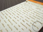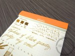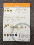 This is the first ink from Iroshizuku I’ve used that doesn’t perform well on all papers. There’s some blotchy feathering and bleeding on my standard ink review paper (Kyokuto FOB COOP) and it gets even worse on regular copy paper. It does play nice with Rhodia though. Other than the performance of the ink, it’s a really interesting color. Ina-ho means “rice ear”, it’s a nice shade of medium gold. It manages to look gold rather than yellow and there’s some interesting  texturing where the ink and paper meet. I really like the color, but its performance is somewhat prohibitive. The gold tones remind me of Noodler’s Rome Burning quite a bit, but hopefully this ink cleans out of the pen a little easier. If you don’t mind sticking to Rhodia, check this one out. It’s a really enjoyable color as long as the paper quality is good. Overall, I was slightly underwhelmed, considering the rest of the Iroshizuku line performs wonderfully.