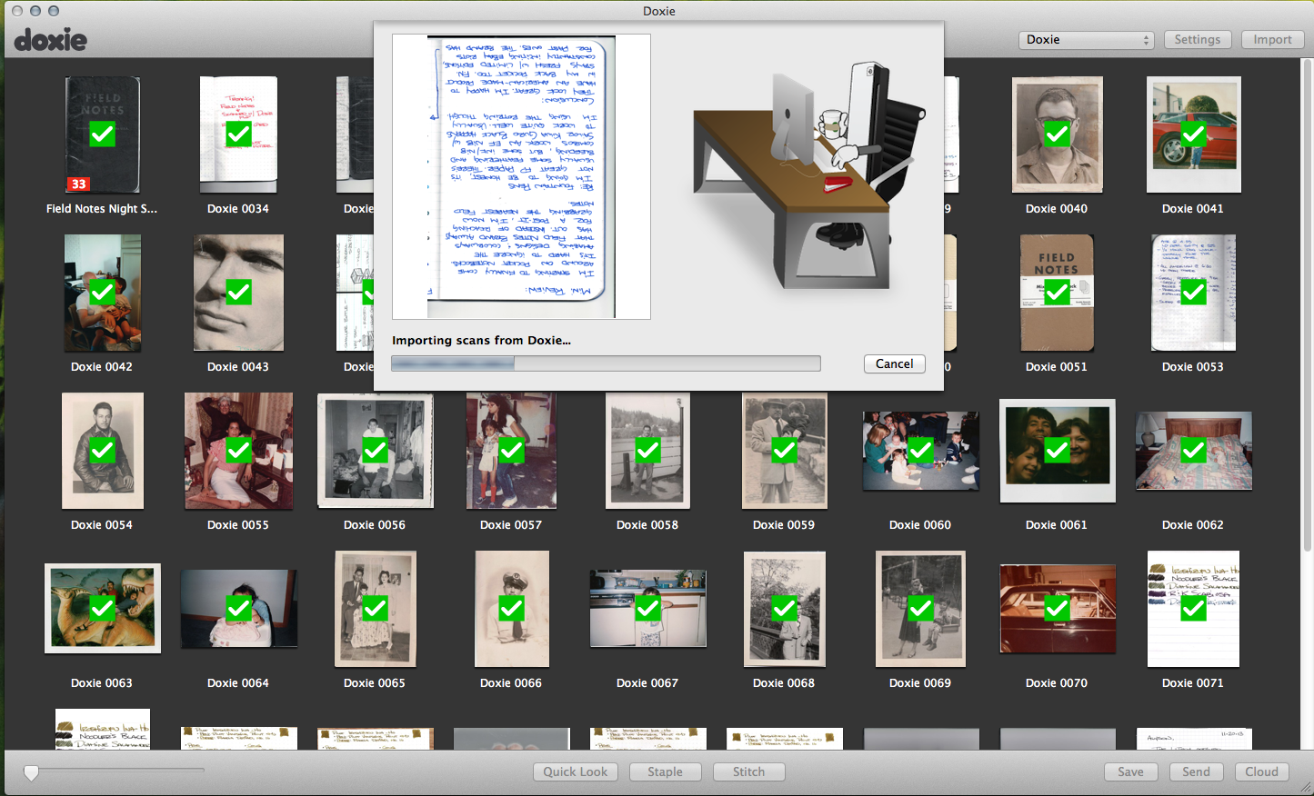 The one thing I found incredibly user friendly is the crop sliders. Fixing up a scan is super easy, and cropping takes seconds. You do not have to import the scans, save them, and open them in another program to get a finished, cropped photo. Another awesome feature which really helps when archiving notebooks is the Staple function. In Doxie’s software, you simply select multiple photos, and click the “Staple” button. You can then export the entire notebook as a PDF with flippable pages. Overall the software is intuitive, fast and easy, just like operating the scanner.