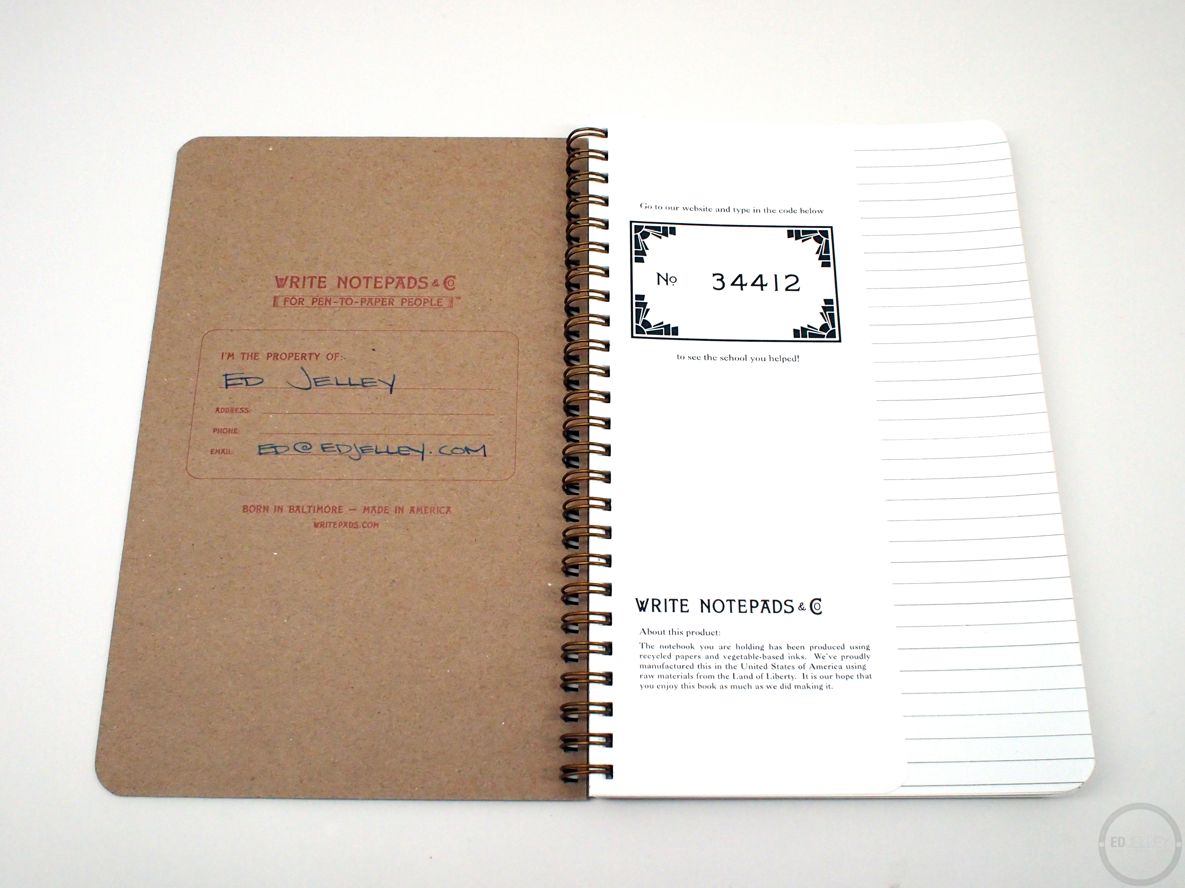 Notes: Chris over at Write Notepads & Co. was kind enough to reach out and send me some product to check out. Write Notepads & Co. are a relatively new company with a family history of book binding. The company has a program in which they donate a notepad to a local school for every notepad that is purchased.