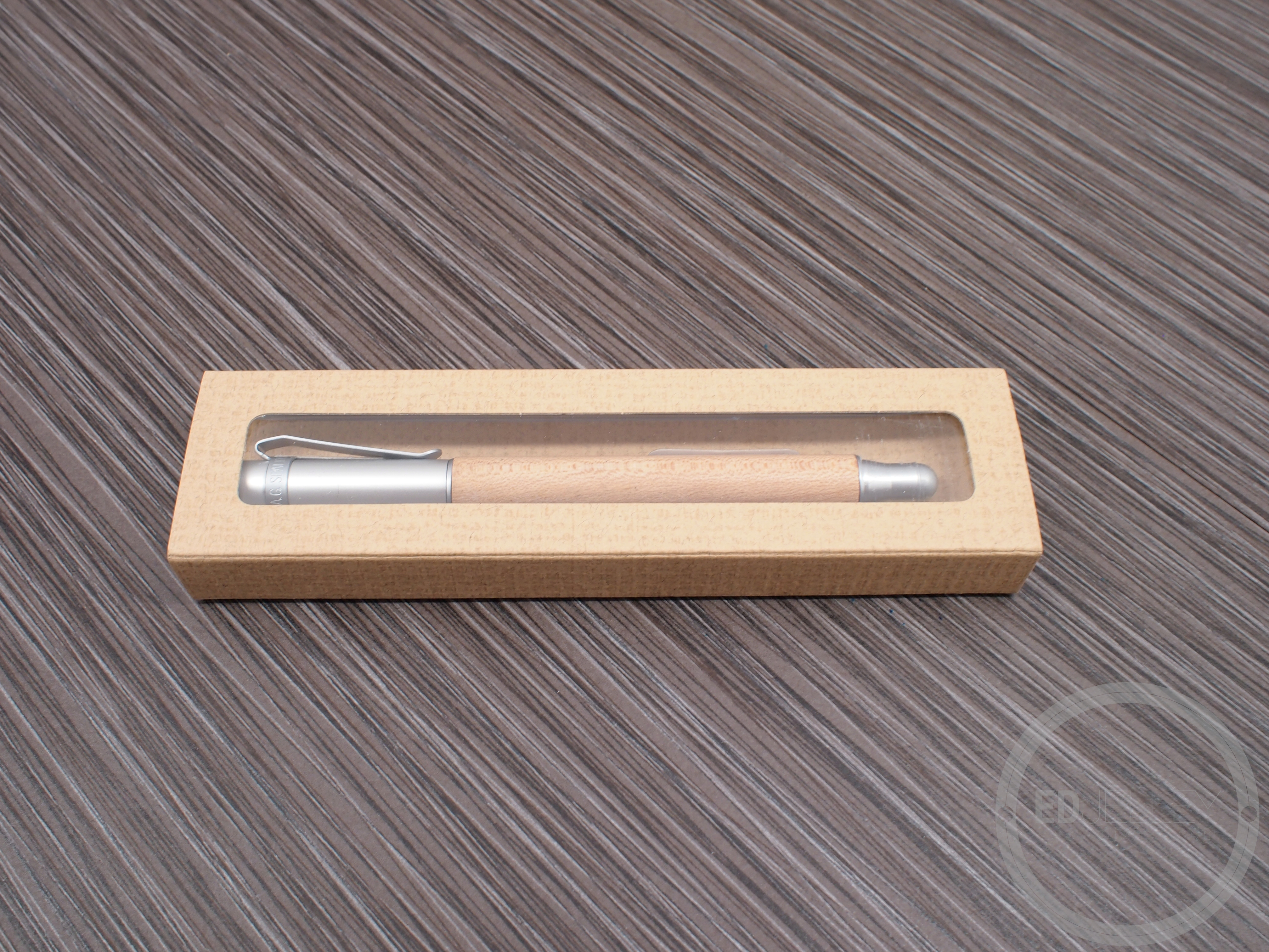 The BRFT220 (catchy name, right?) has some pretty cool packaging. The pen is in a clear plastic case with a woodgrain textured sleeve over it. There’s a window in the sleeve that nicely shows off the pen. Overall, it’s a nice presentation that would make a good gift.
