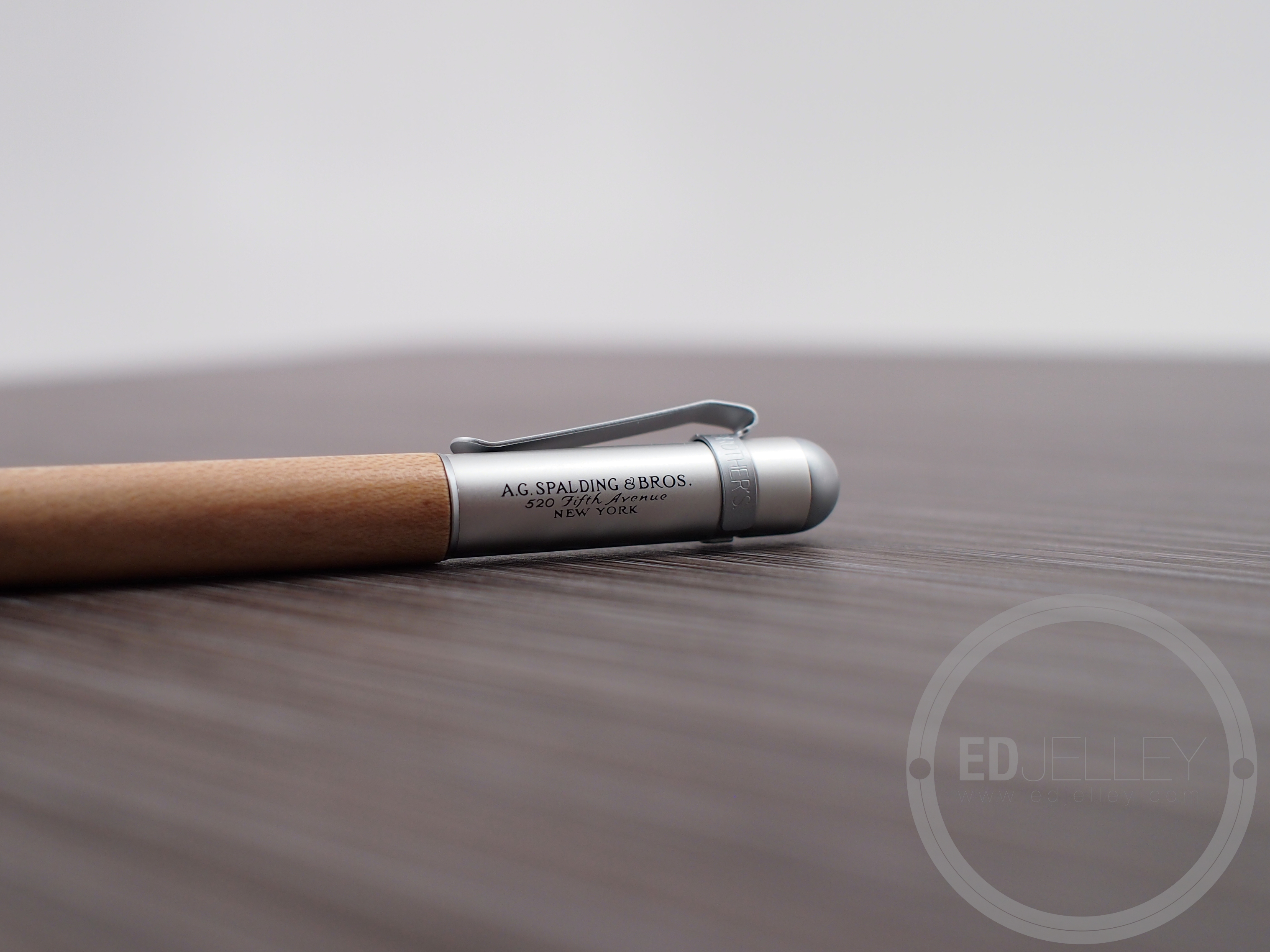 The A.G. Spalding & Bros BRFT220 fountain pen is definitely a unique writing instrument. It has a small aluminum grip, a natural maple body and a nice sturdy clip. Huge thanks to my friends over at JetPens for sending the pen over for review. I’m still a bit torn over some design aspects of the pen, but it’s medium nib writes very well. It’s a unique pen that I’ve looked at on JetPens for a long time now, and I’m glad it’s now a part of my collection.