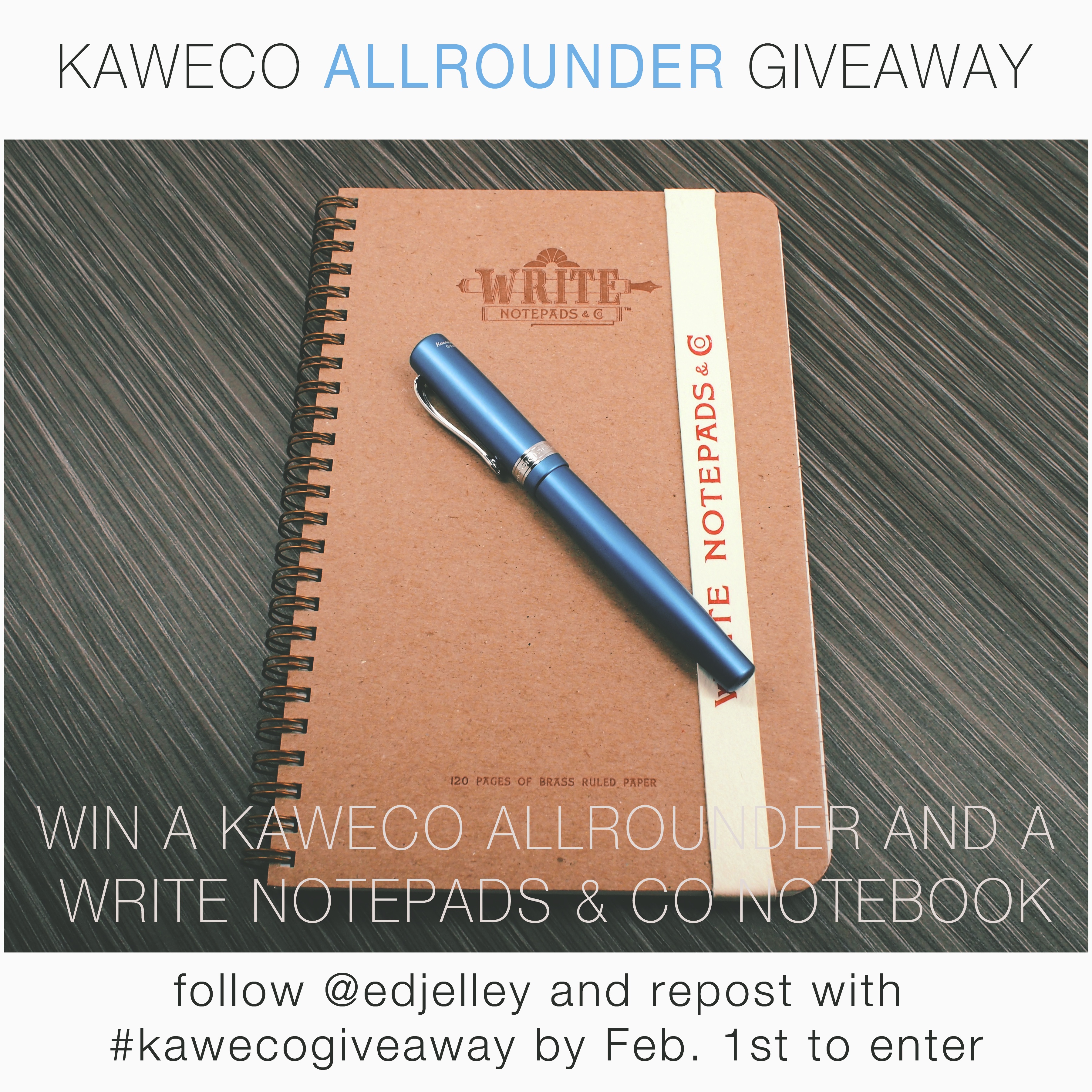 Hey everyone, I’ve decided to give away a blue anodized Kaweco Allrounder with a broad nib and a large Write Notepads & Co. Notebook through my Instagram account.