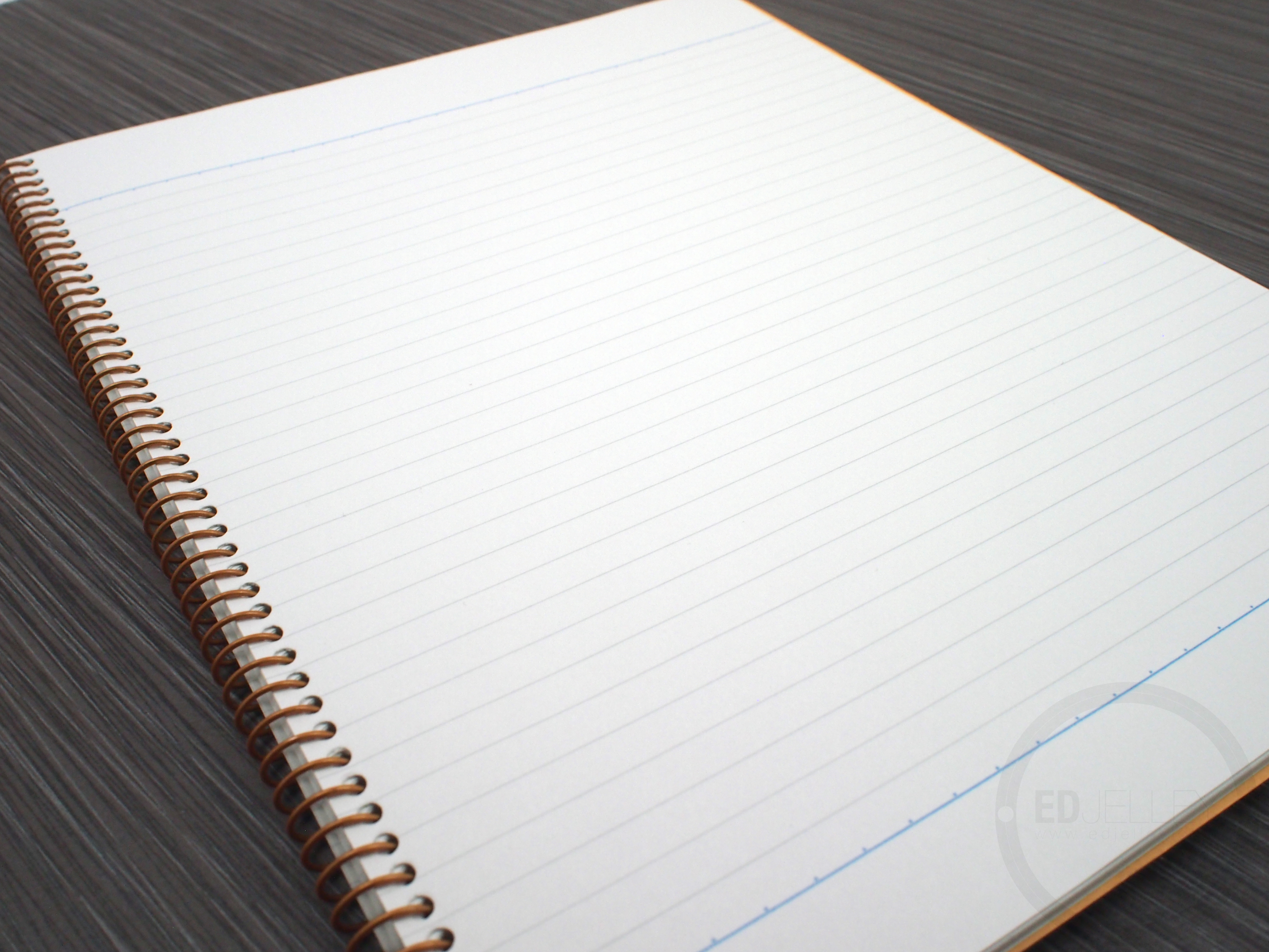 Being a fan of Kyokuto paper, I knew I had to try out this awesome looking notebook as soon as I saw it. Loaded with 62 sheets of 7mm rule, grey-tinted paper, the Kyokuto Cambridge is definitely a solid notebook. The covers are ultra thick cardboard, and the brass colored spiral binding nicely compliments the mustard-colored covers.