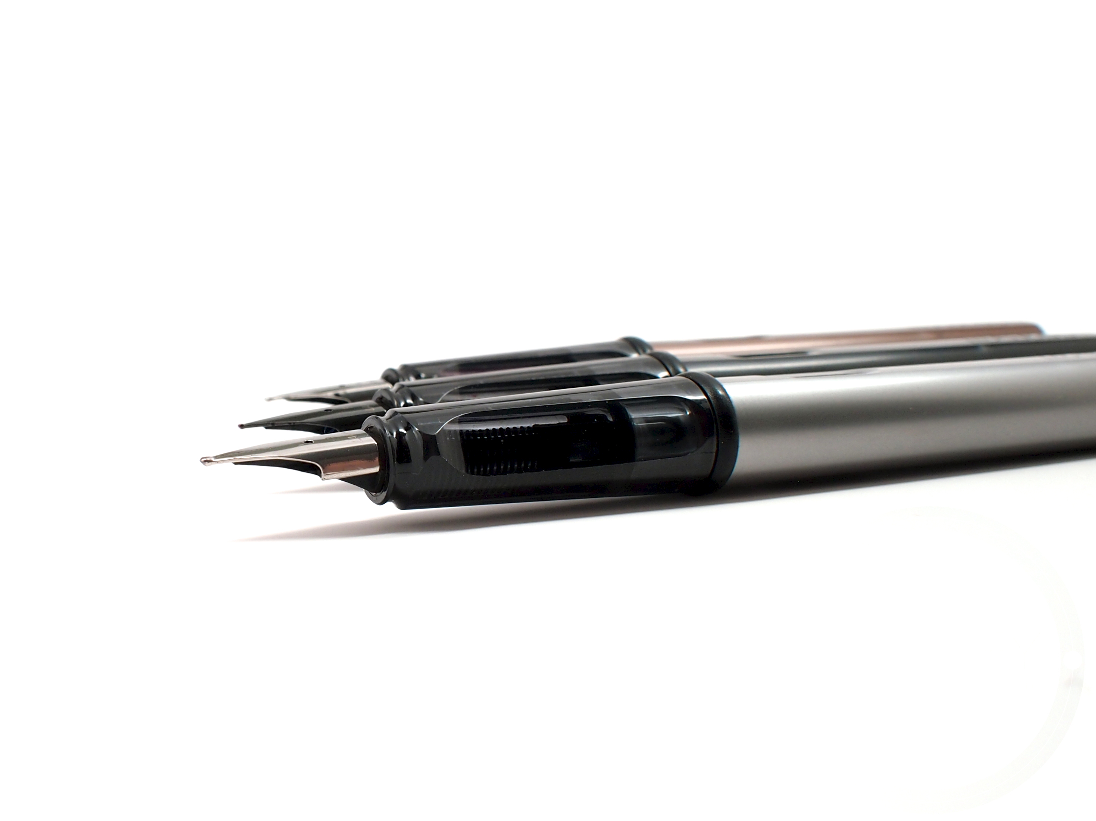 The difference between the Safari grip and the AL-Star grip is that instead of matching the body, all of the AL-Stars have a smoky transparent grey plastic grip, regardless of the color of the pen. I think the dark plastic looks great in pretty much every body combination (the sandy metallic tan doesn’t look so great in my opinion). I absolutely love the modern design that Lamy employs throughout their entire product line, and the AL-Star is no exception.