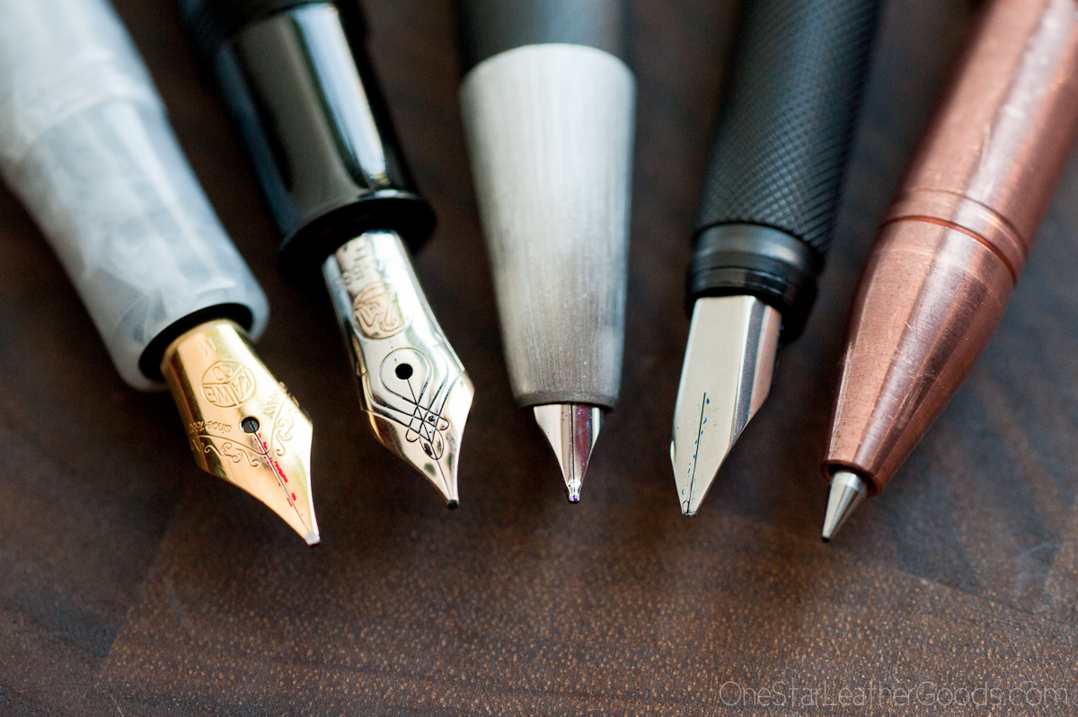 • Karas Kustoms Render K in Copper. This is one hell of a pen. The design is flawless (Dan Bishop is a genius), and while I prefer the lighter weight aluminum if I’m going to be writing for extended periods, the solid copper is so gorgeous and rugged. It has a permanent home these days clipped to the front pocket of my jeans. It is perfect for quick notes, grocery list check-offs, and if someone ever tries to jump you in an alley they will have their hands full if you’re armed with this beast. I have it loaded up with a black Otho ceramic roller ball refill, .5mm.
