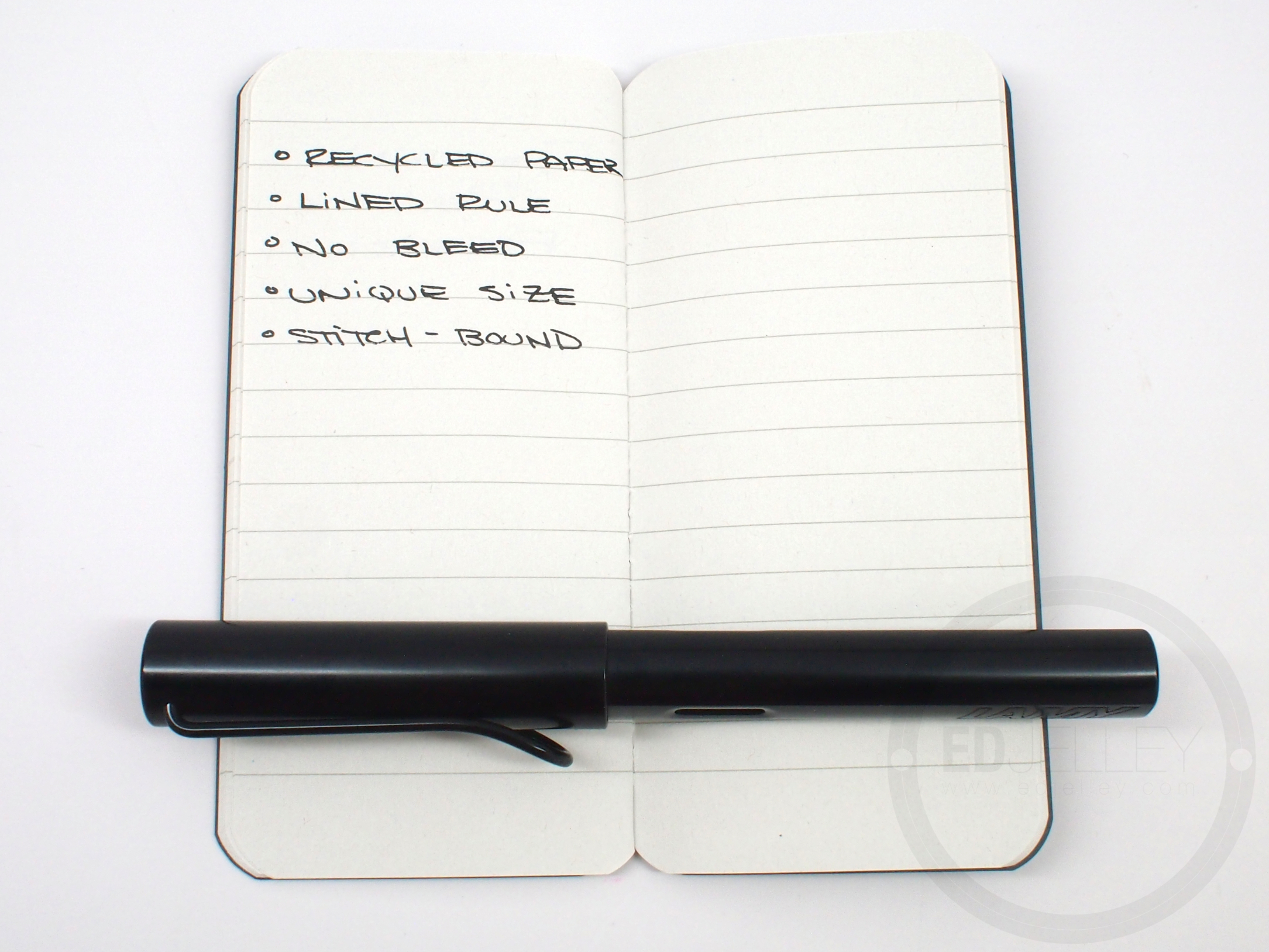 I was quite surprised at how well the Paperscreen recycled paper handles fountain pen ink. There’s no bleed to be found, even with heavier flowing pens. I didn’t expect much from the off-white, recycled paper, but I was pleasantly surprised. Dry time is decent as well since the paper has no coating. The paper has a small amount of texture which can give some extra feedback, depending on the fine-ness of the nib. I’m happy with how the paper performs and feels, especially for a pocket notebook.