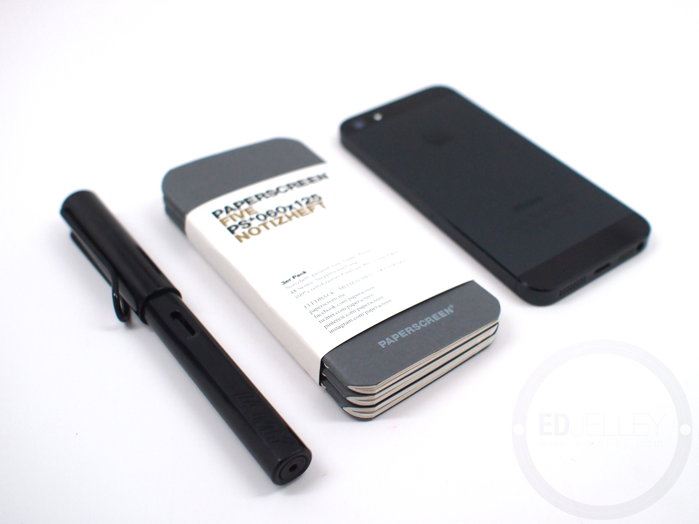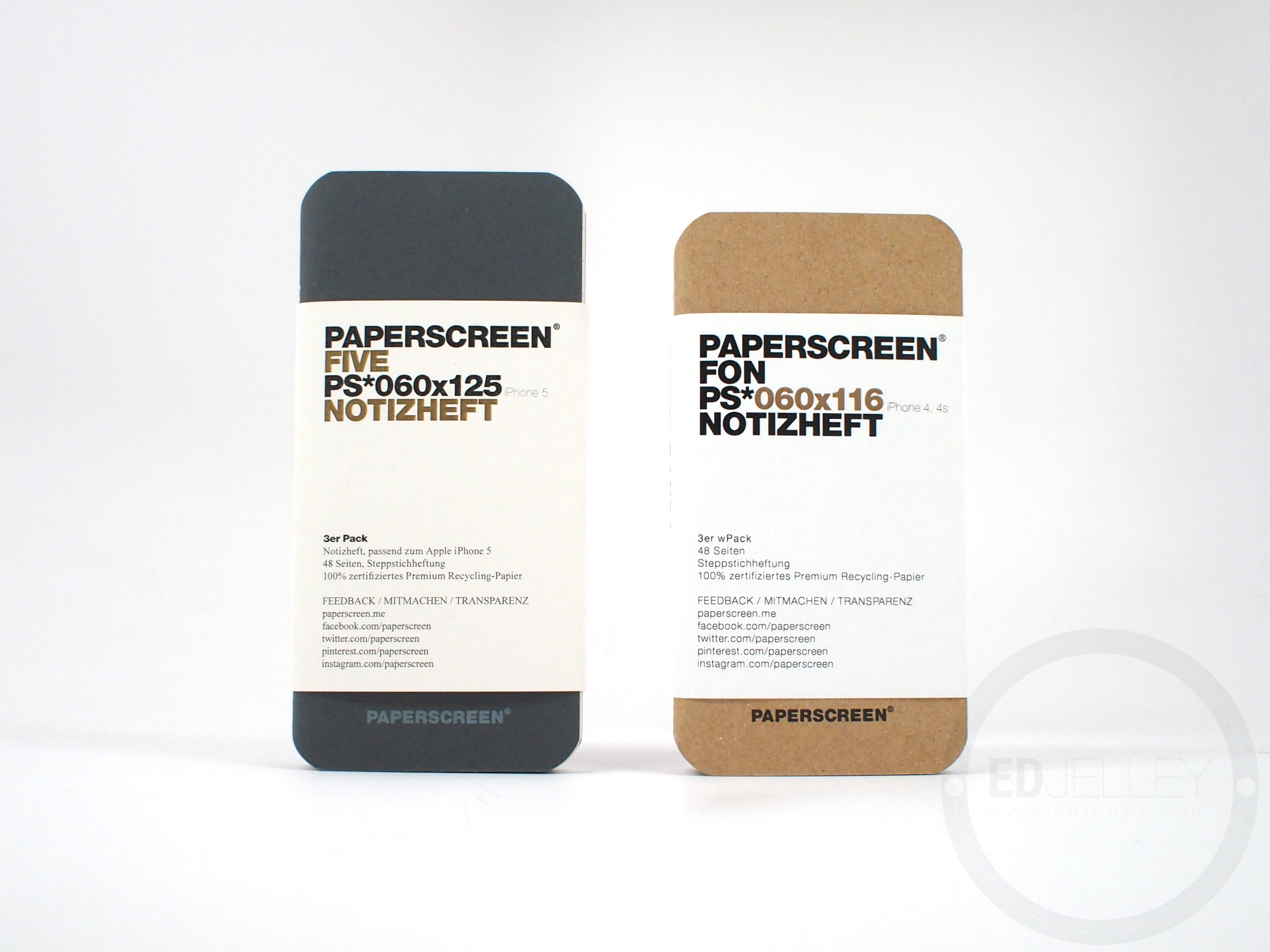 Paperscreen is a brand new company out of Germany that is hand making notebooks in an original format. Instead of using regular paper sizes, they have decided to use the screen sizes of popular electronic devices. At first this seemed a bit gimmicky, but in practice, it actually works quite well for carrying/packing in a bag. I use an iPhone 5, and the notebooks definitely “piggyback” well with the phone. The smaller, slimmer size is also more pocket-friendly than the typical 3.5″x5.5″ pocket notebook. Rounded out with fountain pen-friendly paper and a bunch of different formats, the Paperscreen notebooks are a refreshing entry into the ever-growing world of pocket notebooks. Make sure to check out the Gallery at the bottom of the post, I wen’t a bit photo-crazy and there are a lot more there that aren’t in the review!