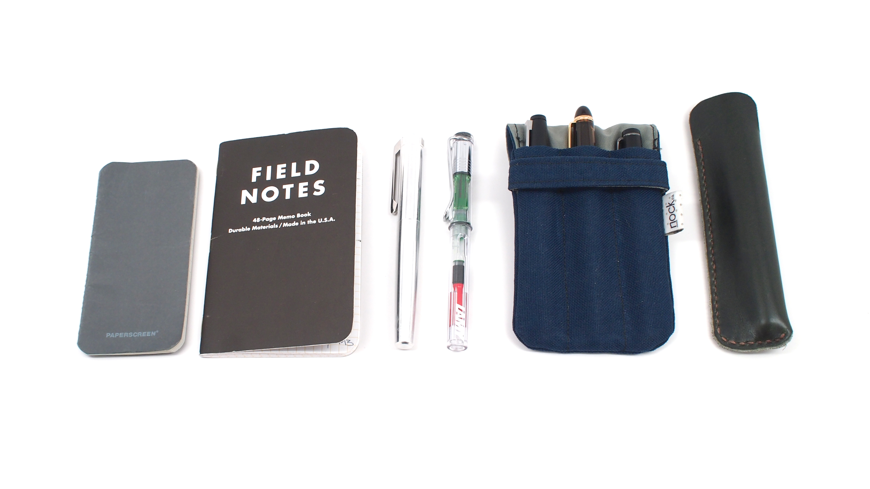 I’ve also been carrying a Paperscreen “Five” notebook in my pocket everyday for writing down odds and ends. It’s the same size as my iPhone, and they’re often in the same pocket. You can check out my full review here. I keep a Field Notes for a daily journal, and I opted to use another one from the Drink Local Colors edition. I’m really happy with the way everything is working out, with the exception of the Noodler’s dilemma. I think it’s going to be tough to change out the pens I’ve been carrying, as I like these so much. Thanks for reading!