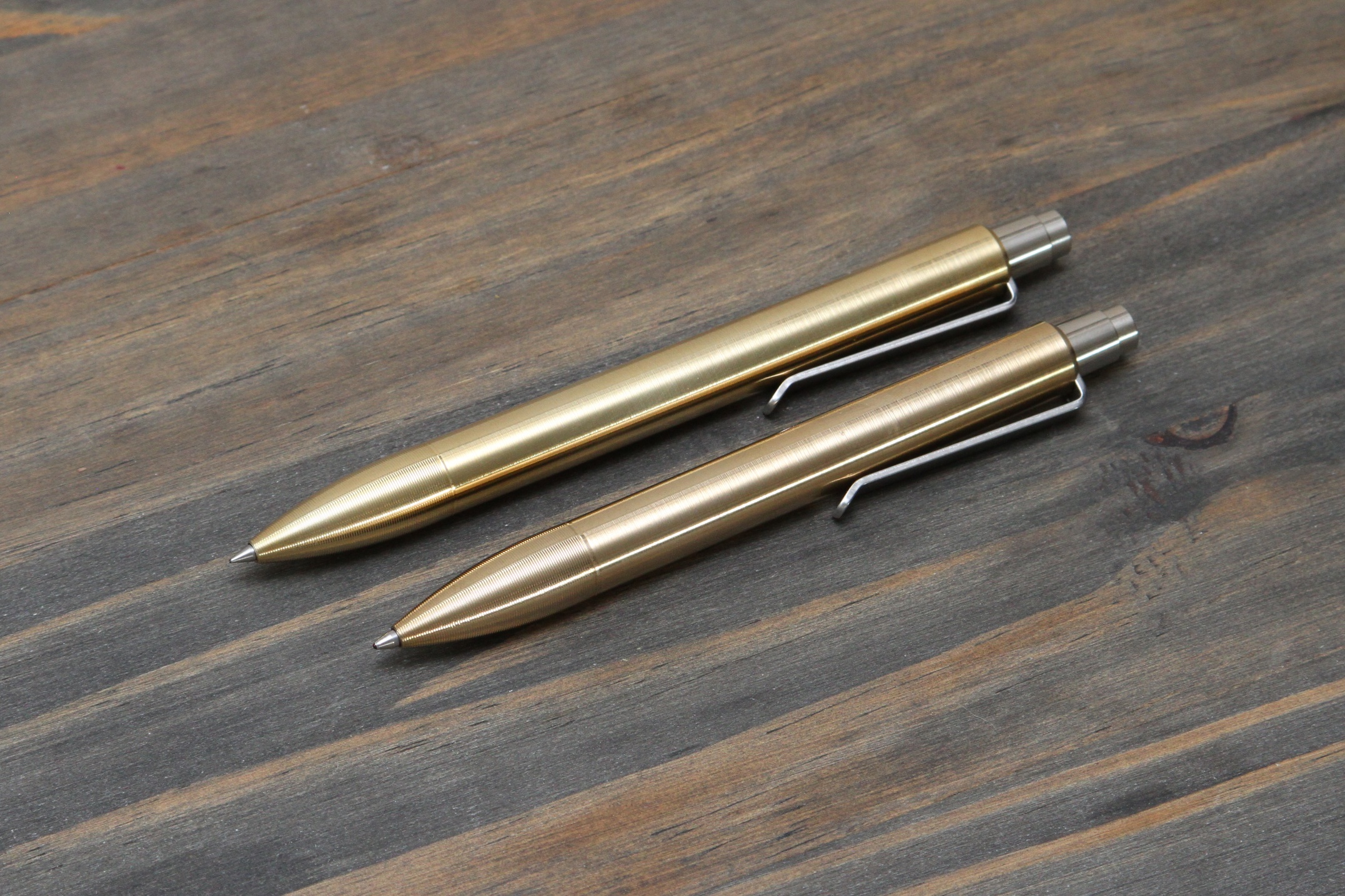 Fit and finish are still great. I showed a brass Shaker to my coworker and he didn’t know how to take it apart. The seam in the middle of the pen is virtually invisible until you need to unscrew the barrel to change out refills. Both the Mover and Shaker feel great in hand, but I prefer the slightly longer Mover. The clips are smooth and have some nice grip without being too stiff. The custom lay pattern grip is what really makes the pen shine though. More on that in the feel section.