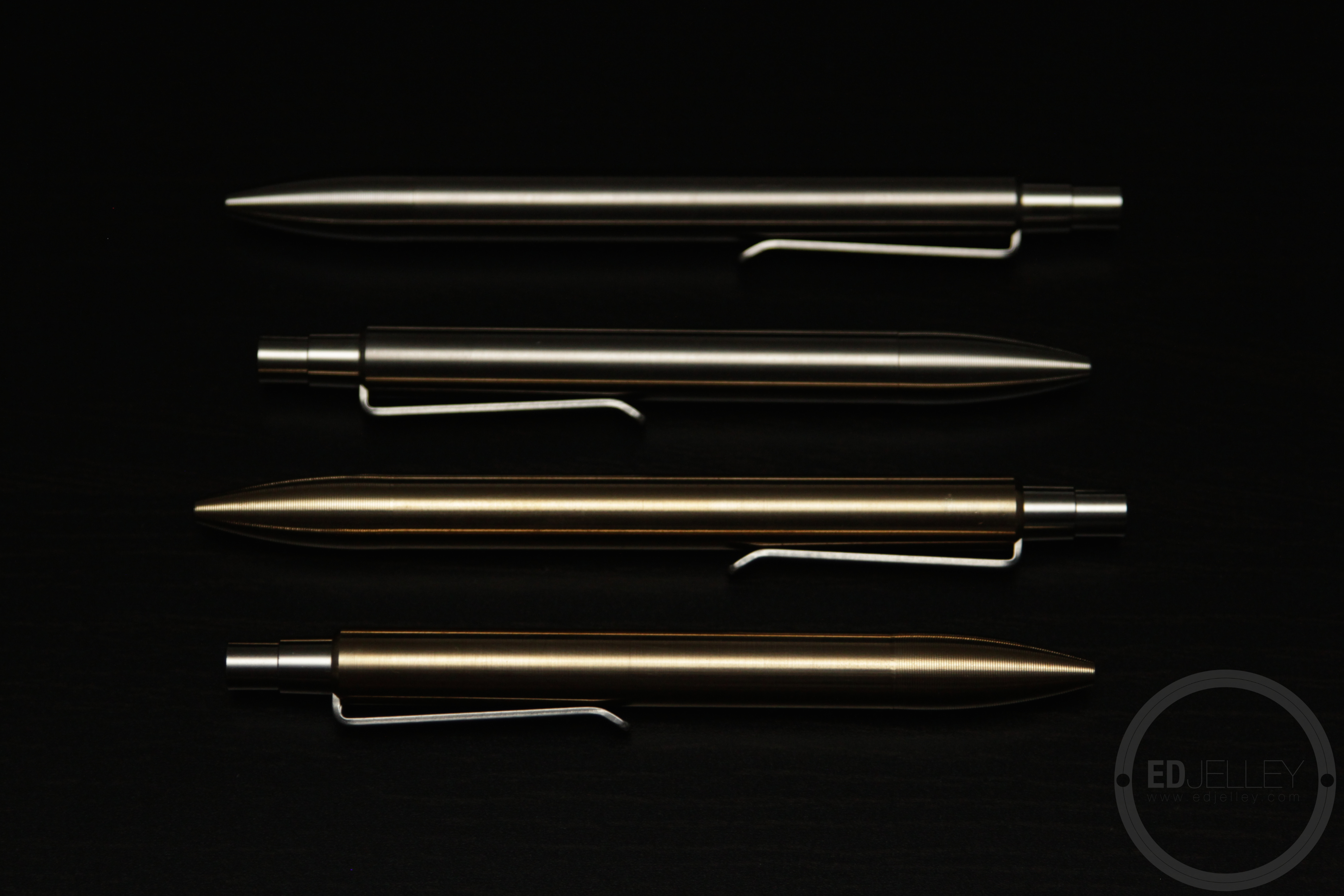 Bronze: The bronze is similar to the brass, but has a reddish undertone to it. It looks and feels similar to the brass, but it will not patina. According to the Kickstarter page, it will maintain it’s brilliance and shine for a long time without polishing. I’m excited to carry this one around and see how it compares to the aging brass.