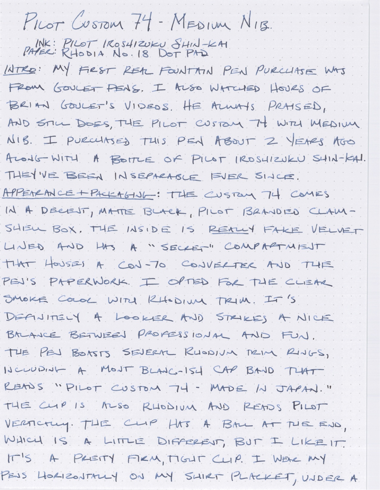 [Guest Post] Pilot Custom 74 Fountain Pen Review