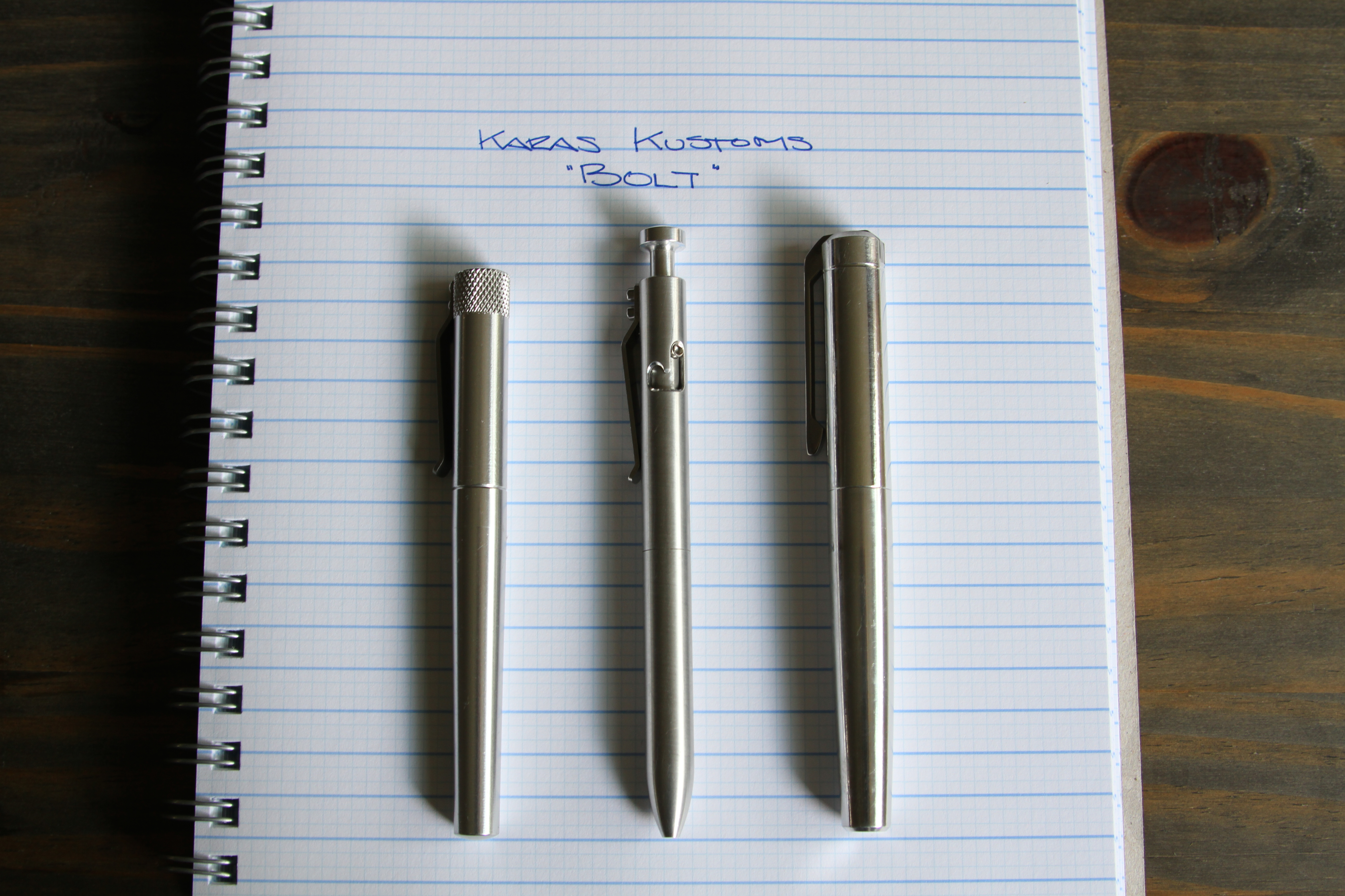 The Bolt really is an awesome pen. It is sleek, well-balanced, and just works when it needs to. I love my Karas Kustoms Ink, and the Bolt makes a great companion. Thanks again to Dan over at Karas for sending the pen over!