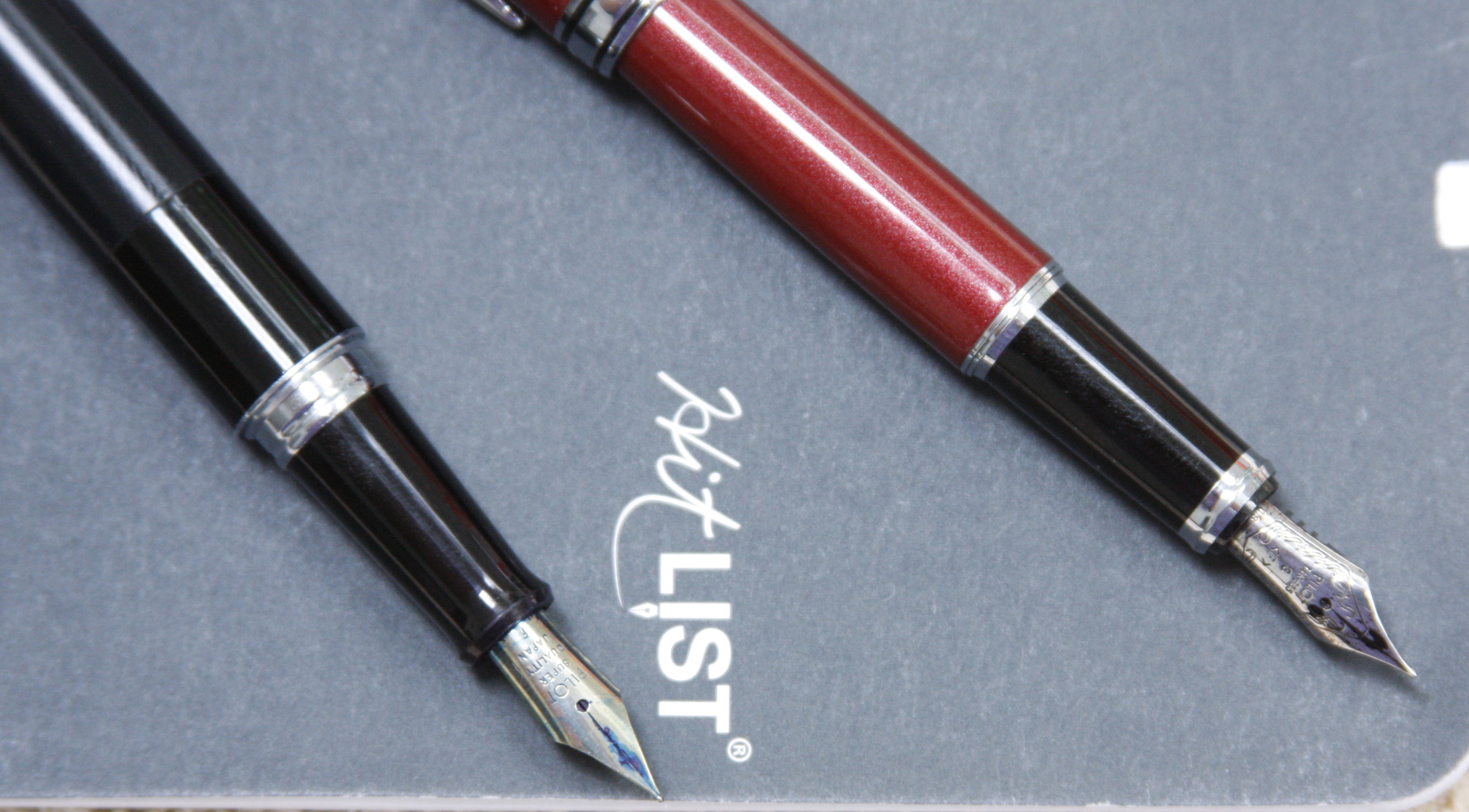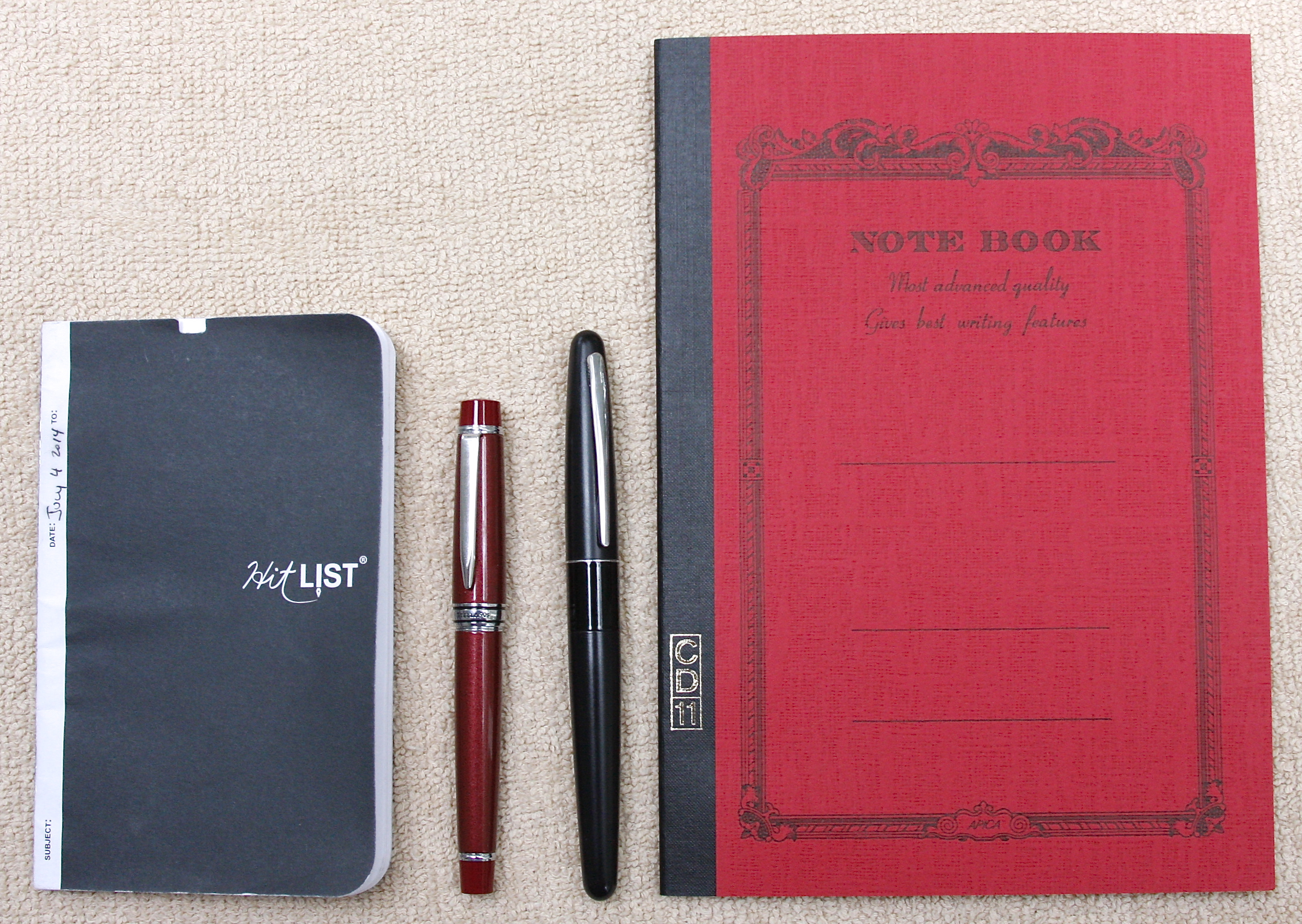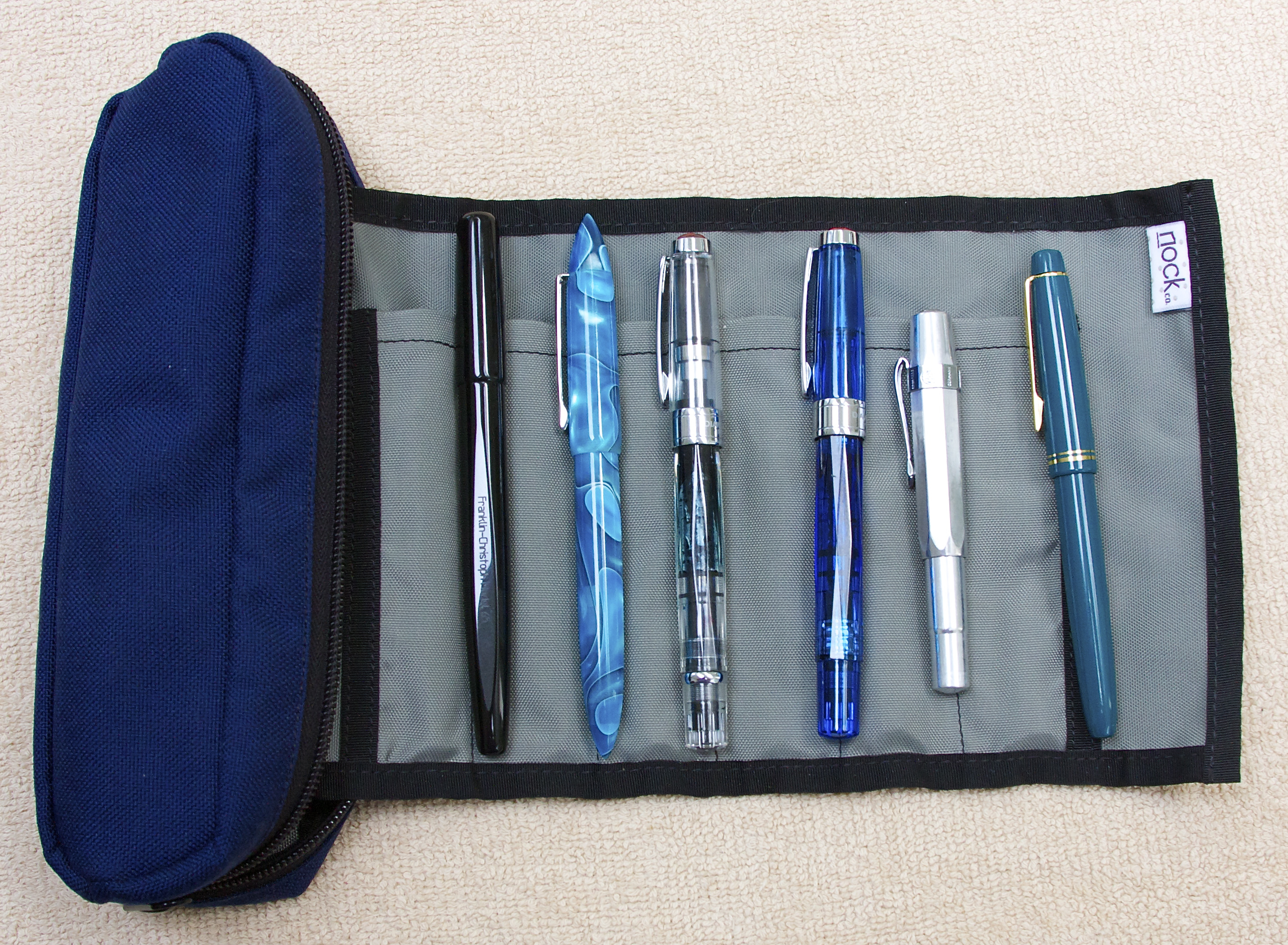 For my daily carry pens, I have standardized on pens with snap caps and pigment based inks. The red/burgundy pen is a Pilot Stella90s with Fine Nib. In the US this pen is known as a Stargazer. This is the only pen that I own which has a gold nib. It’s small size makes a fantastic pen for daily carry and I always have Sailor Kiwa Guro loaded up in it. The second pen that lives in my shirt pocket is this Pilot Metropolitan. It was purchased before the fine nibbed variant was available so I swapped the Metropolitan’s medium nib for the 78G’s fine. This pen is always inked up with Sailor Sei Boku, a great blue/black ink. These two pen and ink combinations were chosen because they perform so well in pocket notebooks and on office grade paper. While they are not my choice for correspondence writing, they get used every day for the tasks for which they were chosen.