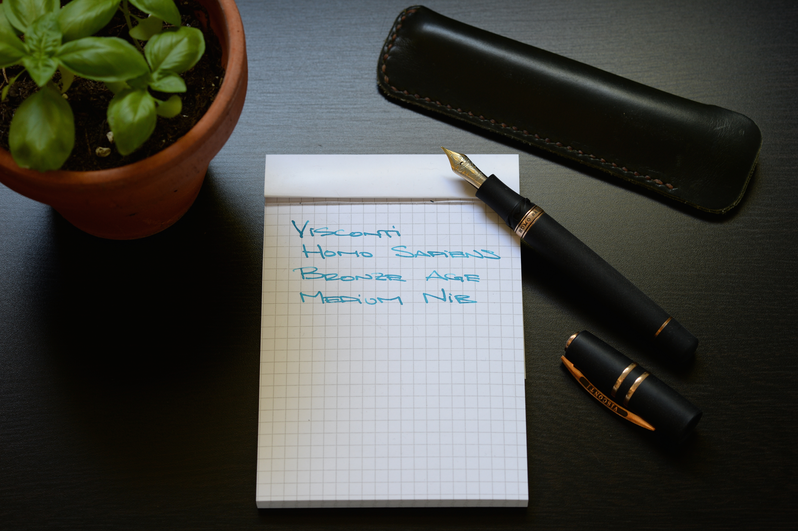 The Homo Sapiens Bronze Age Maxi is my first Visconti and I love it. Awesome looks and unique materials, paired with the smooth nib and great balance make it a near-perfect pen for me. I’m going to have the nib checked over at my next pen show, but it wouldn’t stop me from recommending the pen. Thanks for reading!