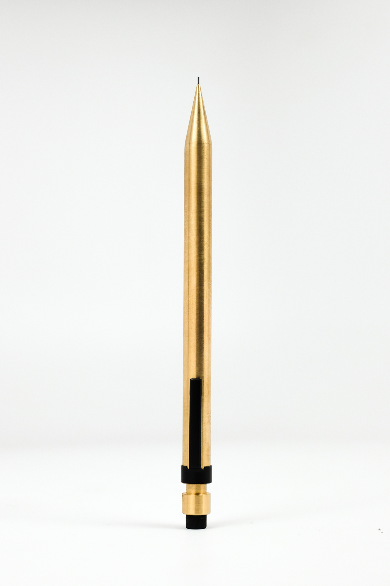 Andrew over at Modern Fuel Design got in touch a few months back about an exciting new pencil project. I’m not huge on mechanical pencils, but this one sounded interesting and I happily agreed to check out the project. The pencil is machined out of brass or aluminum, made in the United States, and perfectly weighted and balanced. The 0.5mm lead advances through the solid brass conical tip with precision. There is not an ounce of wiggle to be found or felt. I thought it was one of the coolest parts of the design because the tapered tip comes to a nice point and has a very small, 0.5mm hole drilled in the end.