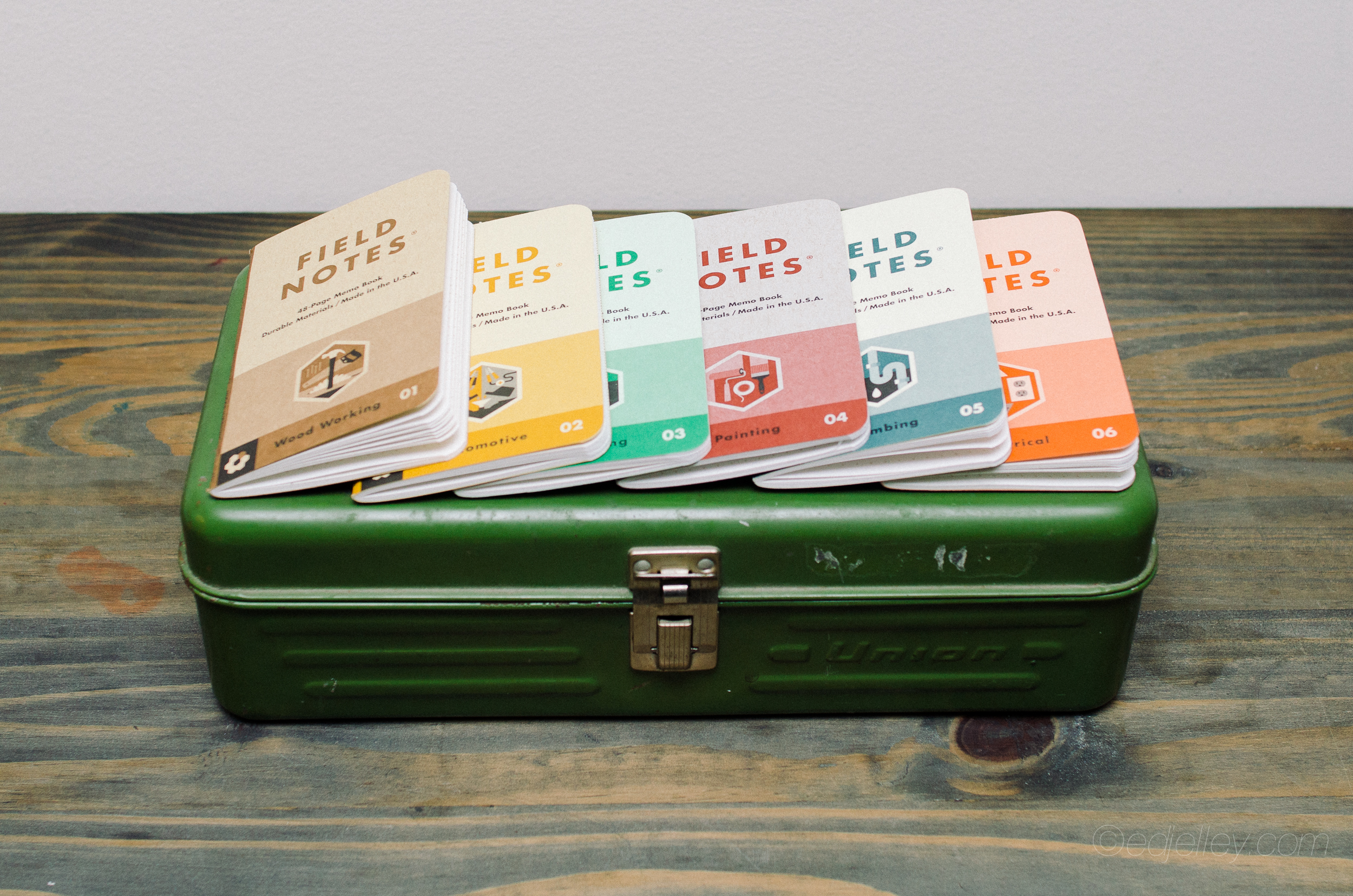 This is going to be like my coverage on the other COLORS editions by Field Notes – more of an overview than a full review. If you’re unaware, Field Notes puts out a quarterly limited edition, usually themed, with some cool details involved. This set of 6 books is packaged in a cardboard slip cover and they’re themed to help you get work done. Each book represents a sect of handiwork, from electrical to plumbing. The covers are heavy 100 lb. stock that feels like it will stand up to being tossed in a toolbox or back pocket.