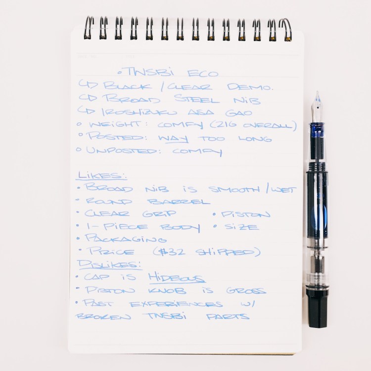 • Worried about breakage (past experience with TWSBI has been “meh”)