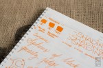 Despite the name, J. Herbin’s Orange Indien is not an india ink, and it will perform just fine in your fountain pen. The ink writes a bit “thin”, which results in great flow, but low saturation. It’s not the brightest ink on the page, but it does exhibit some nice, low-key shading. The color isn’t very bright like Noodler’s Apache Sunset, making it a nice middle of the road orange. Orange Indien is definitely legible on bright white paper, but maybe not as much on cream or off-white. I’m not huge on this orange, but the small bottle is just enough to get a few good fills out of it! Thanks to JetPens for sending the bottle over for review!