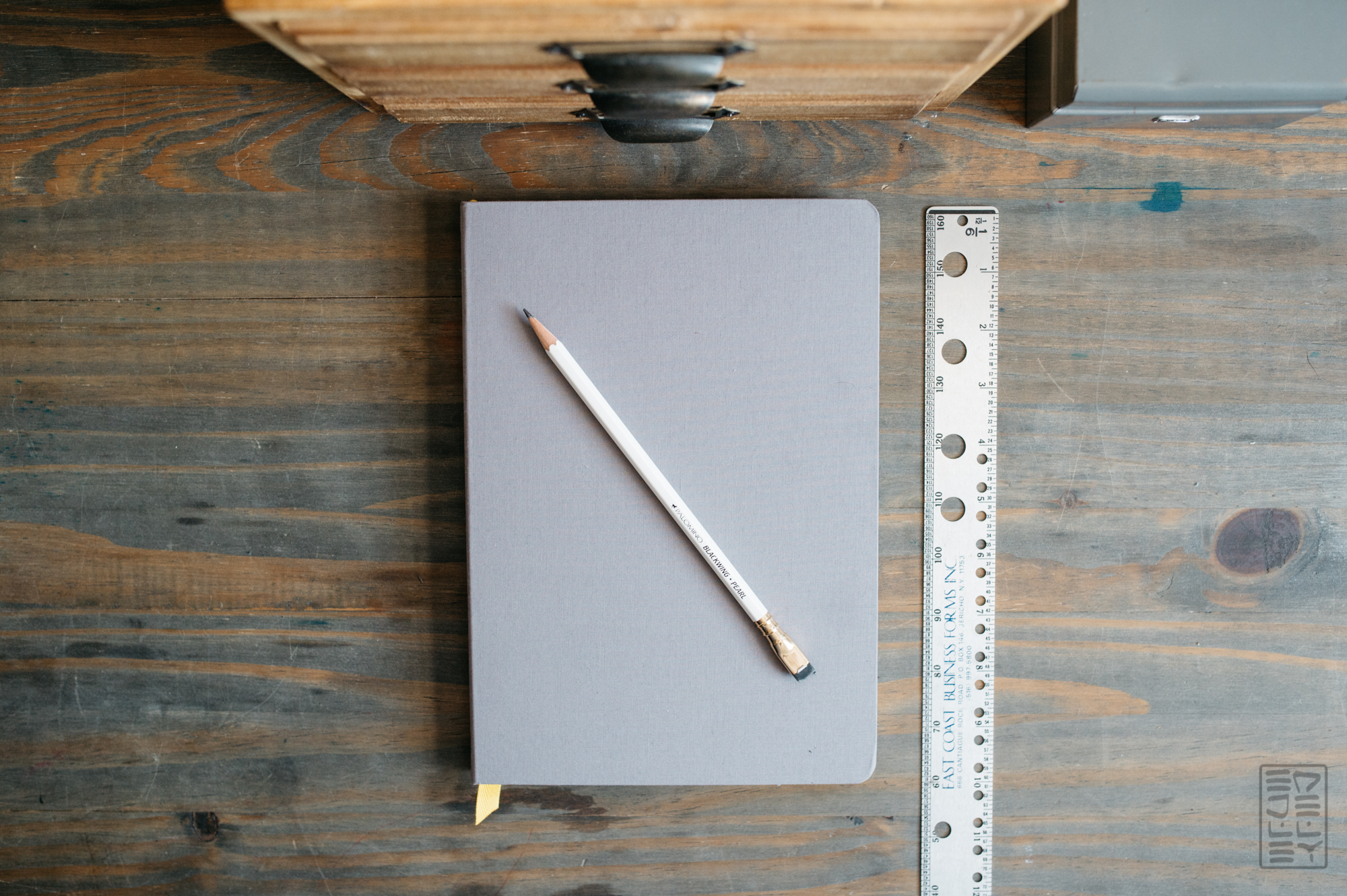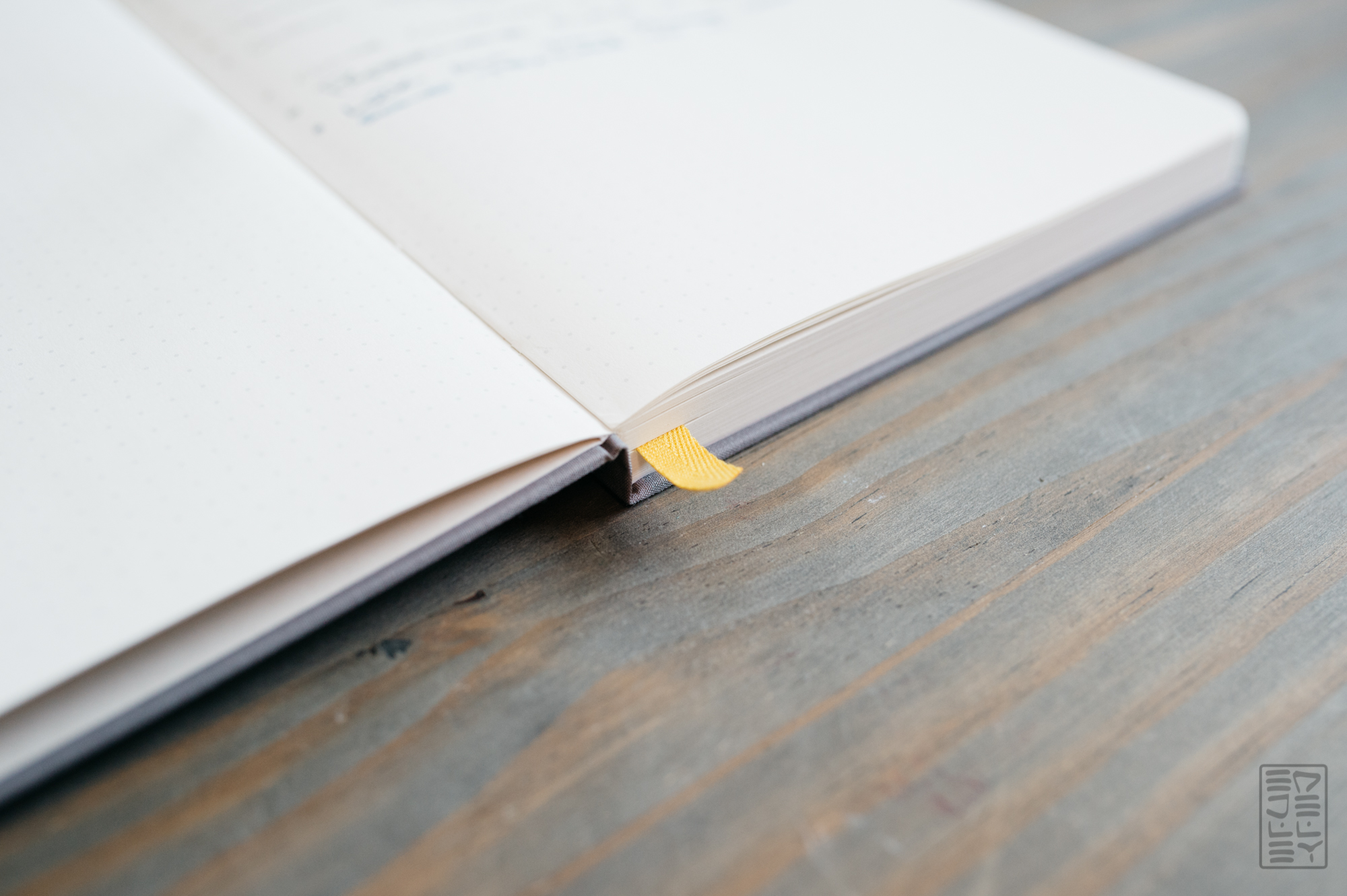 On the page, the ruling is lightly applied, as to stay out of the way of your writing or sketches. It’s available in both standard grey, and a darker charcoal. A few years back, I got a light grey one to review, and being the slob that I am, spilled Chinese food on it. The hardcover is coated with cloth, so it picked up a stain, like nearly every button down shirt I own that’s lighter in color than jet black. Every time I include it in photos, the stain haunts me – it needs to be healing brushed out. A constant reminder to be a little more respectful to my stationery. Anyway, the point is that I like the darker color. It won’t show wear as much, and I prefer charcoal over the light grey.
