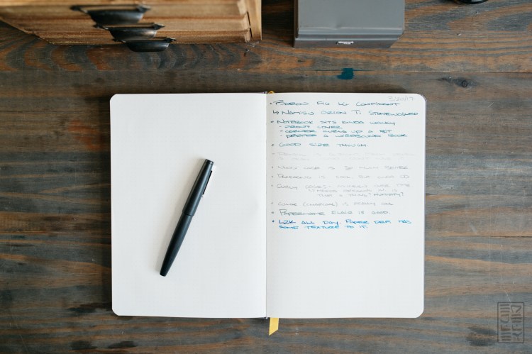 The paper is pretty friendly with the pens and inks I’ve tried, showing just a little bit through to the back side. Feathering is minimal, if any and of course varies depending on the pen and ink combo you’re using. There’s not much more to say, it’s a solid notebook at a reasonable price, with some nice standout features and minimal design. I’ve been keeping the notebook on my desk at work, and it’s been quite solid.