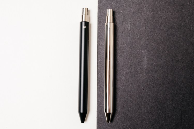 In hand, the pen feels surprisingly solid. At 57g, the pen is quite hefty. The pen widens from the knock to the tip, giving it a slight forward balance. It’s 5″ long, which hits the sweet spot between too long and too short. While it can be carried easily in a pocket, the lack of clip makes it a little less pocket-friendly. A nice black leather pen sleeve would definitely pair well with the INVENTERY pen. As for the writing experience, the pen utilizes a Schmidt P8126 refill. It’s a standard capless rollerball that writes smoothly with little feedback.