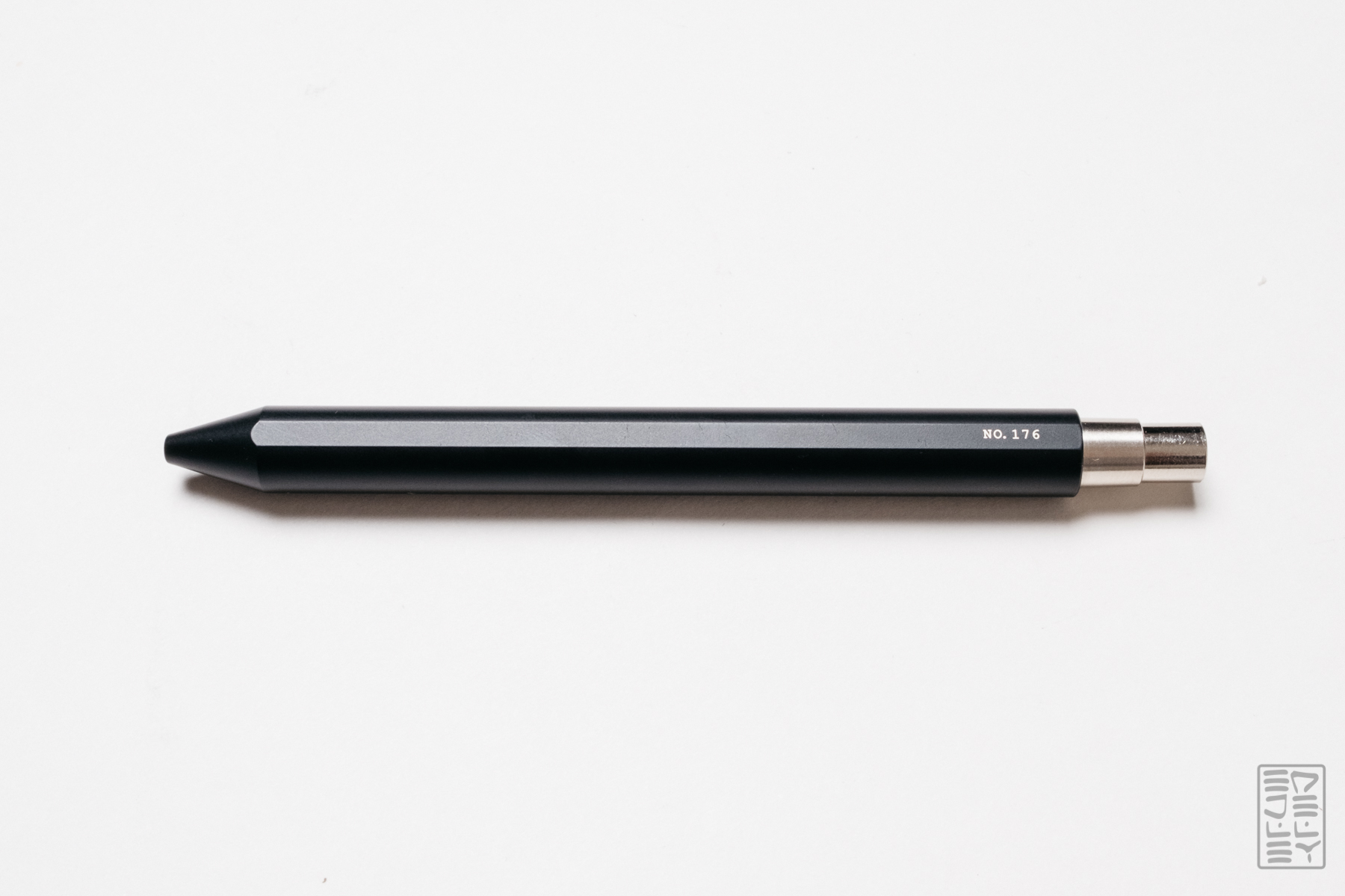 You’ll also notice that the bottom of the pen is flat. Why? So it doesn’t roll right off your desk. I admit, this is a problem for me with clipless pens (I’m looking at you, Namisu). It’s nice that the pen sits solidly on a flat surface and to be honest, I think it’s a big selling point for the pen. The flat spot is just enough to keep the pen from rolling, yet not so much that it gets in the way while writing.