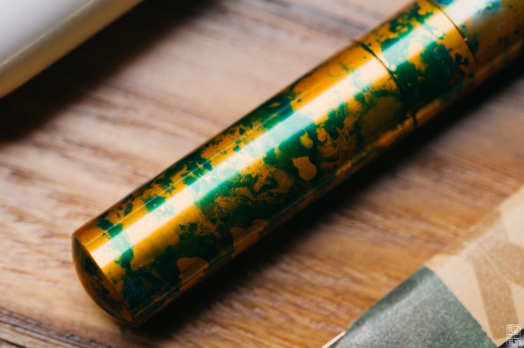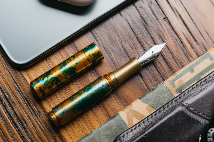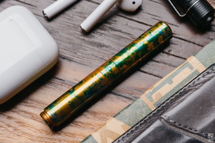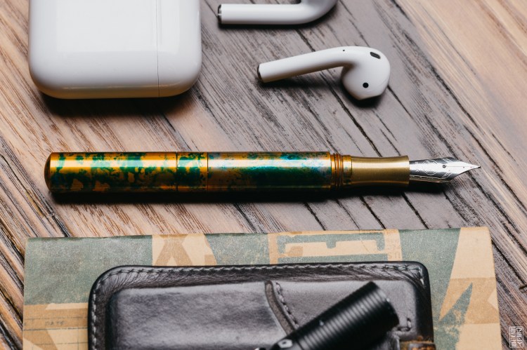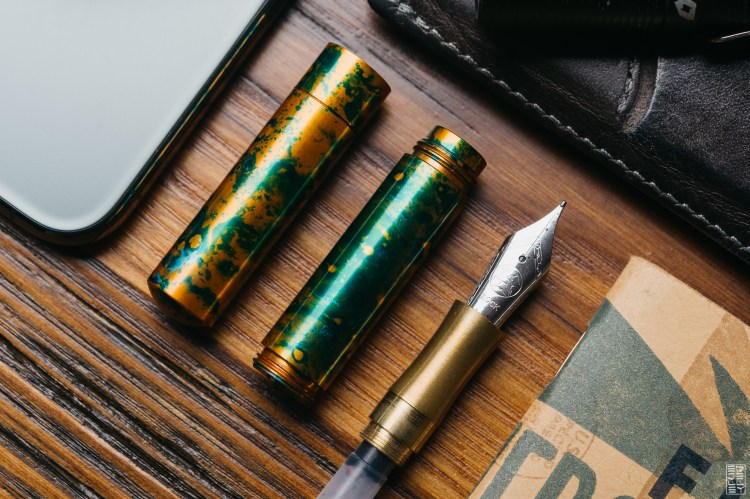 Today we’re taking a look at the “Pocket Six” – a pocket sized fountain pen with a big ol’ #6 nib. I wonder where Ian at Schon Design got the name for this thing anyway? The model we’re taking a look at features an aluminum body with some seriously crazy anodizing with a brass grip and steel nib. Each pen is machined in Ian’s Philadelphia-based workshop and is entirely made in the USA (with the exception of the German nib). Let’s dive in and break down the Pocket Six.