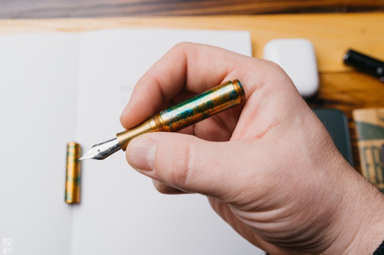 In the hand, the Pocket Six feels good. Once capped, it’s a nice size, especially for a pocket pen. The grip is comfortable and I enjoy the extra heft provided by the brass option. Ian’s construction and machining are both top-notch. Threads throughout are smooth and easy to turn, the cap is sealed with an o-ring to prevent inky pocket catastrophes, and it feels tight overall. If you try writing without the cap posted, you’re going to have a bad time. Unless you have the world’s smallest hands.