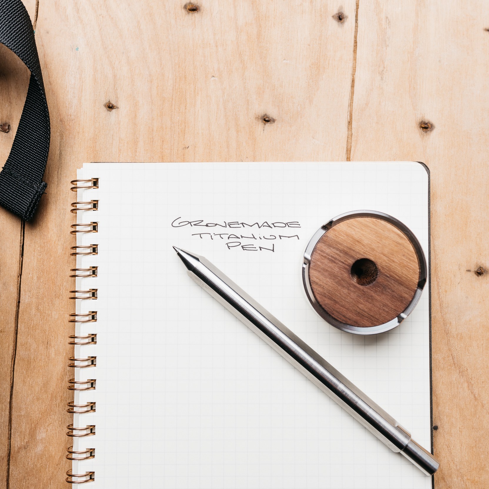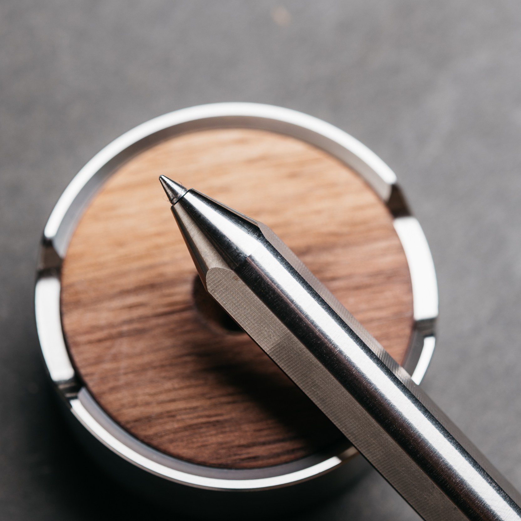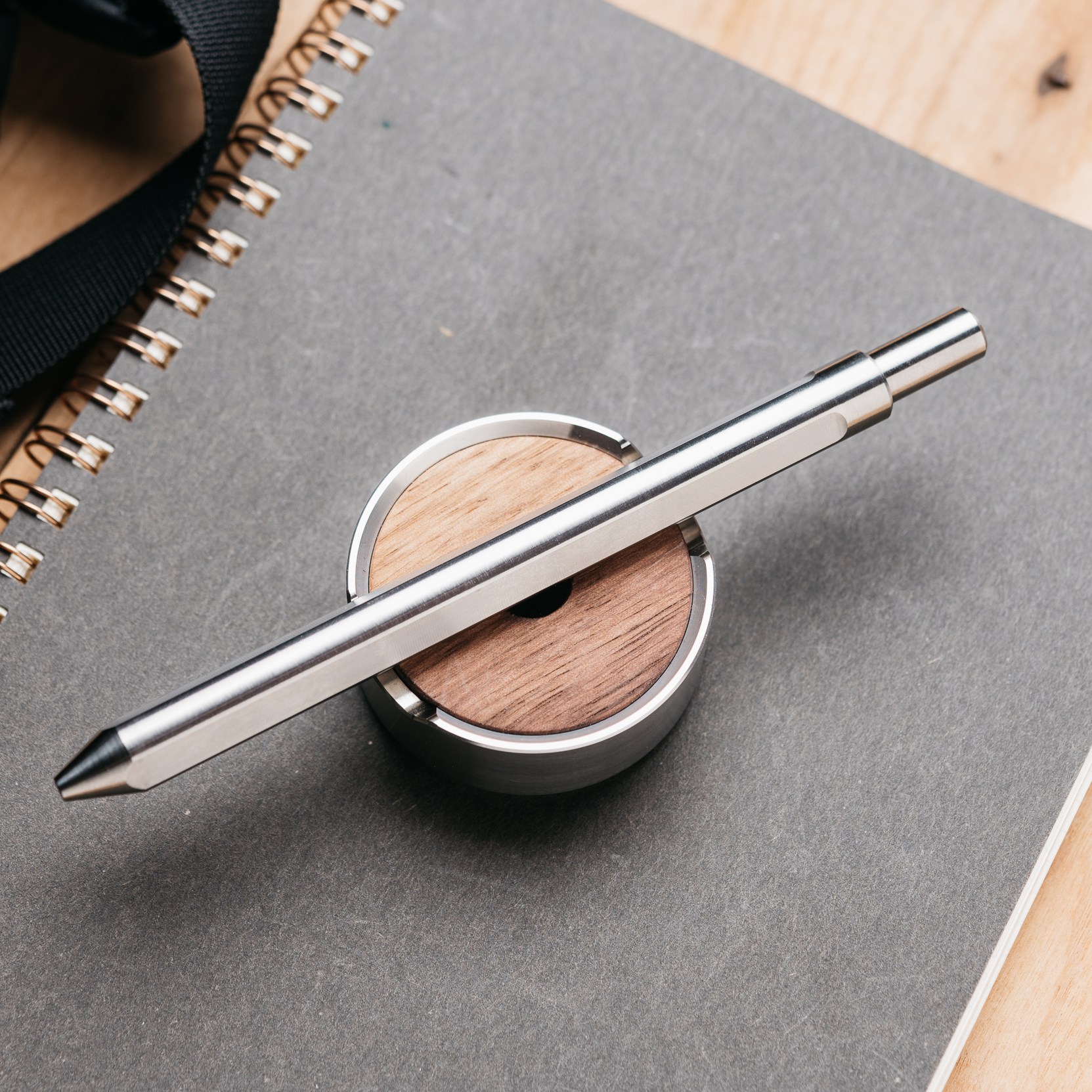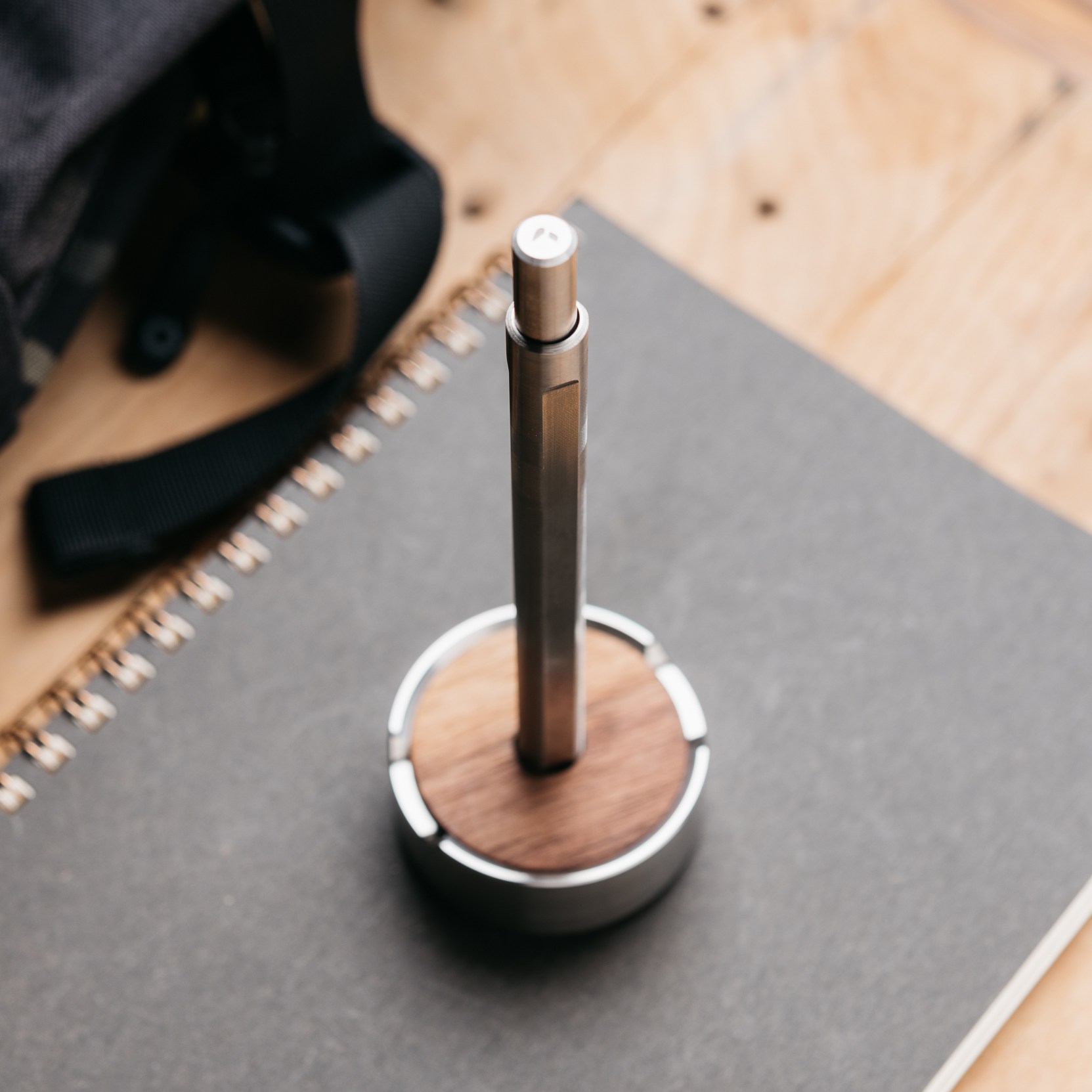 The Grovemade Titanium Pen and Stand is pretty much exactly what the name implies. It’s a titanium pen with a stainless steel and walnut stand from a company that brings you premium desk, home, and EDC accessories.