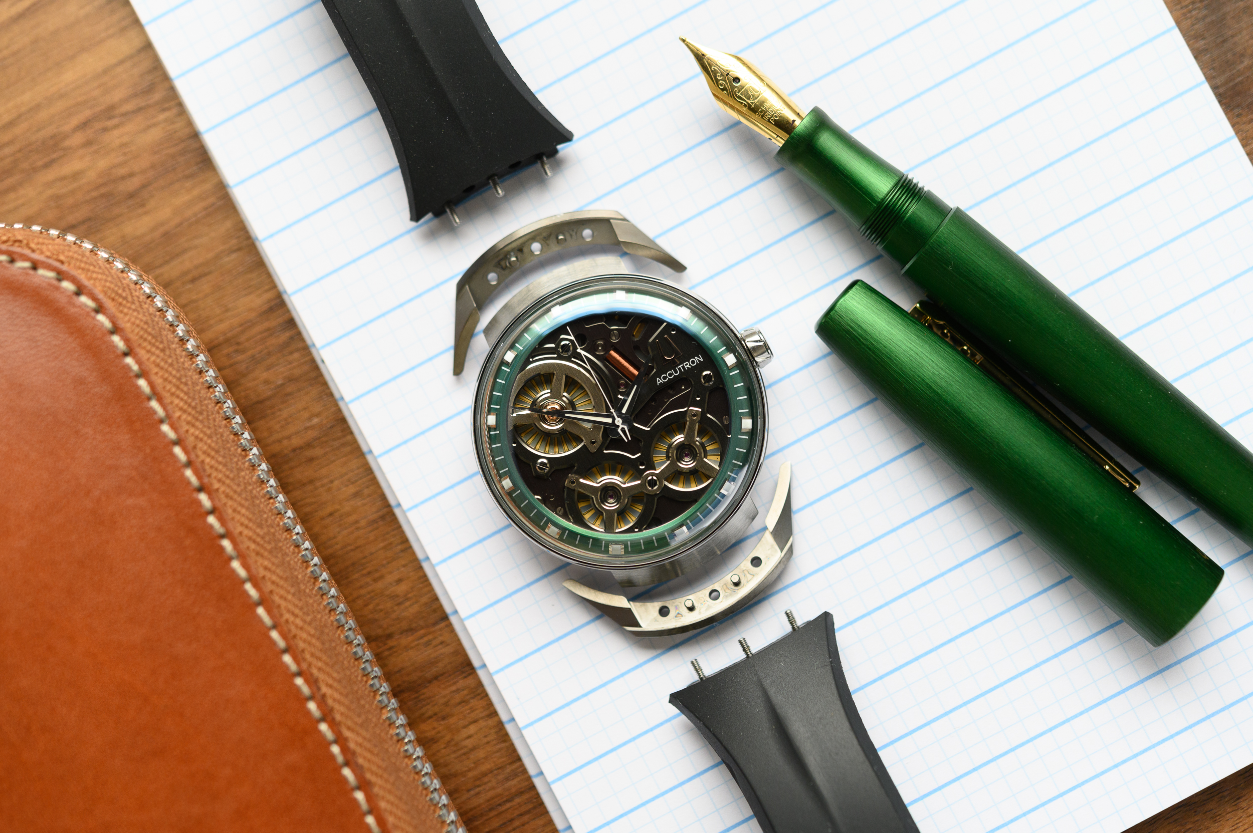 This is a fun collaboration from two re-born brands. I’ve enjoyed using the pen, especially seeing it alongside the watch while I had it in for review. If you’re looking for something a little bit out of the ordinary, are a fan of watches, or simply just enjoy green, then the Esterbrook x Accutron Camden is the pen for you. At $275 with a steel nib, it doesn’t represent the best value in fountain pens out there, but sometimes it’s not about that. If a pen makes you feel something, or matches something you really happen to enjoy, then sometimes you can overlook the features. The bottom line is that this is a handsome, well-balanced pen that writes really well. If you want to learn more about the partnership between Esterbrook and Accutron, you can check it out right here. Again, a big thanks to Accutron for sending the pen over, Cary at Kenro/Esterbrook for the connection, and of course to you guys for reading this.