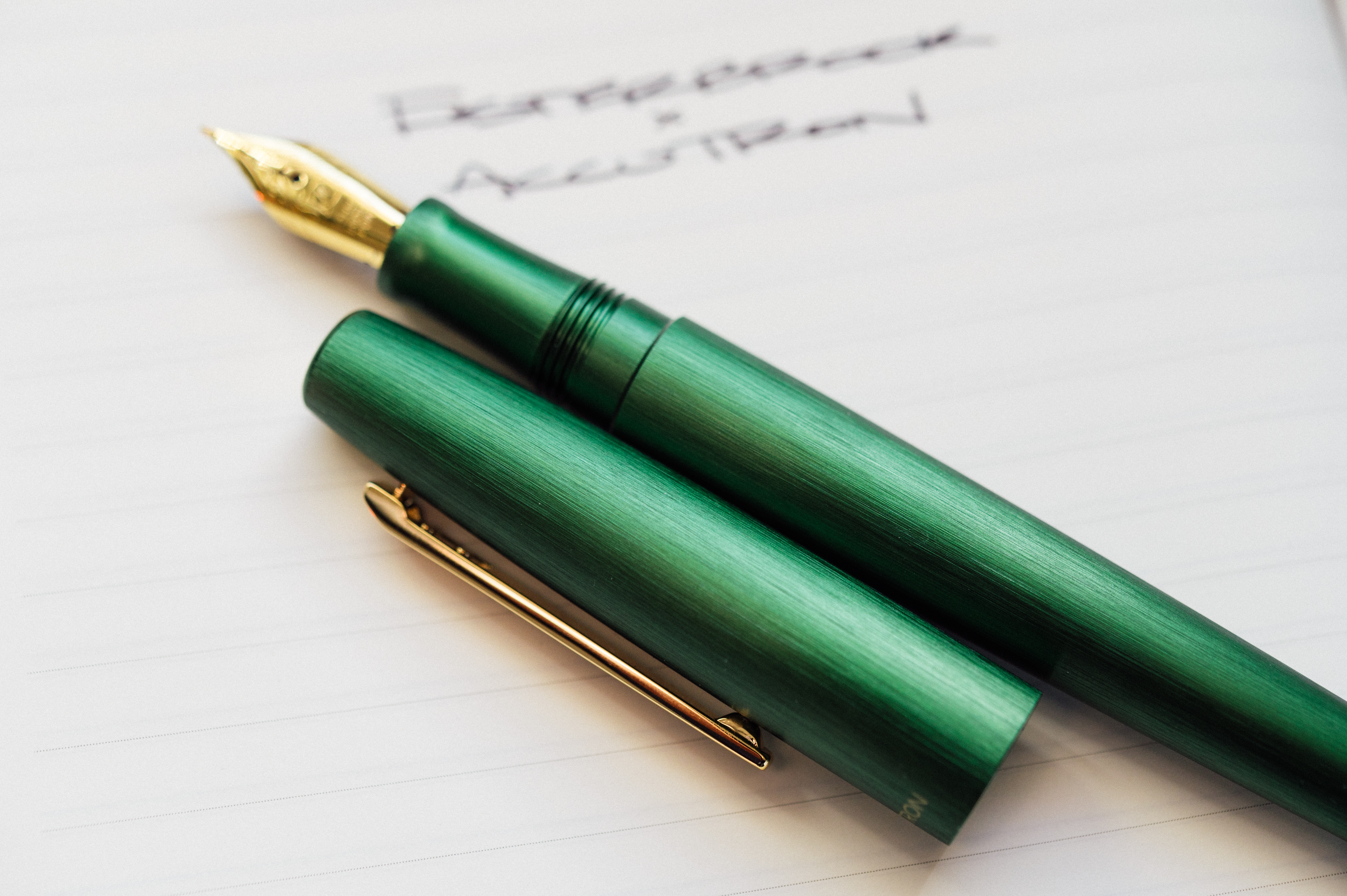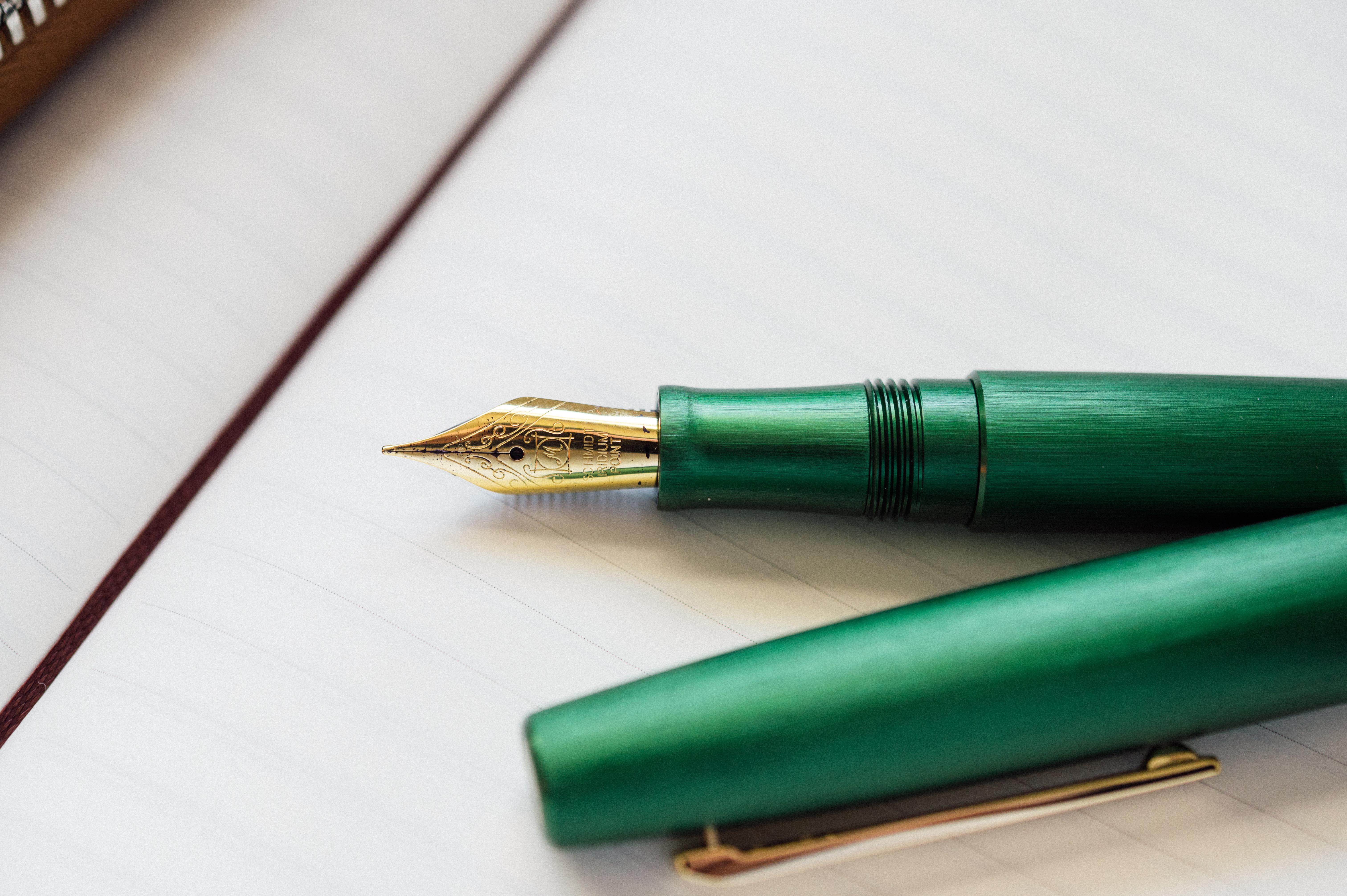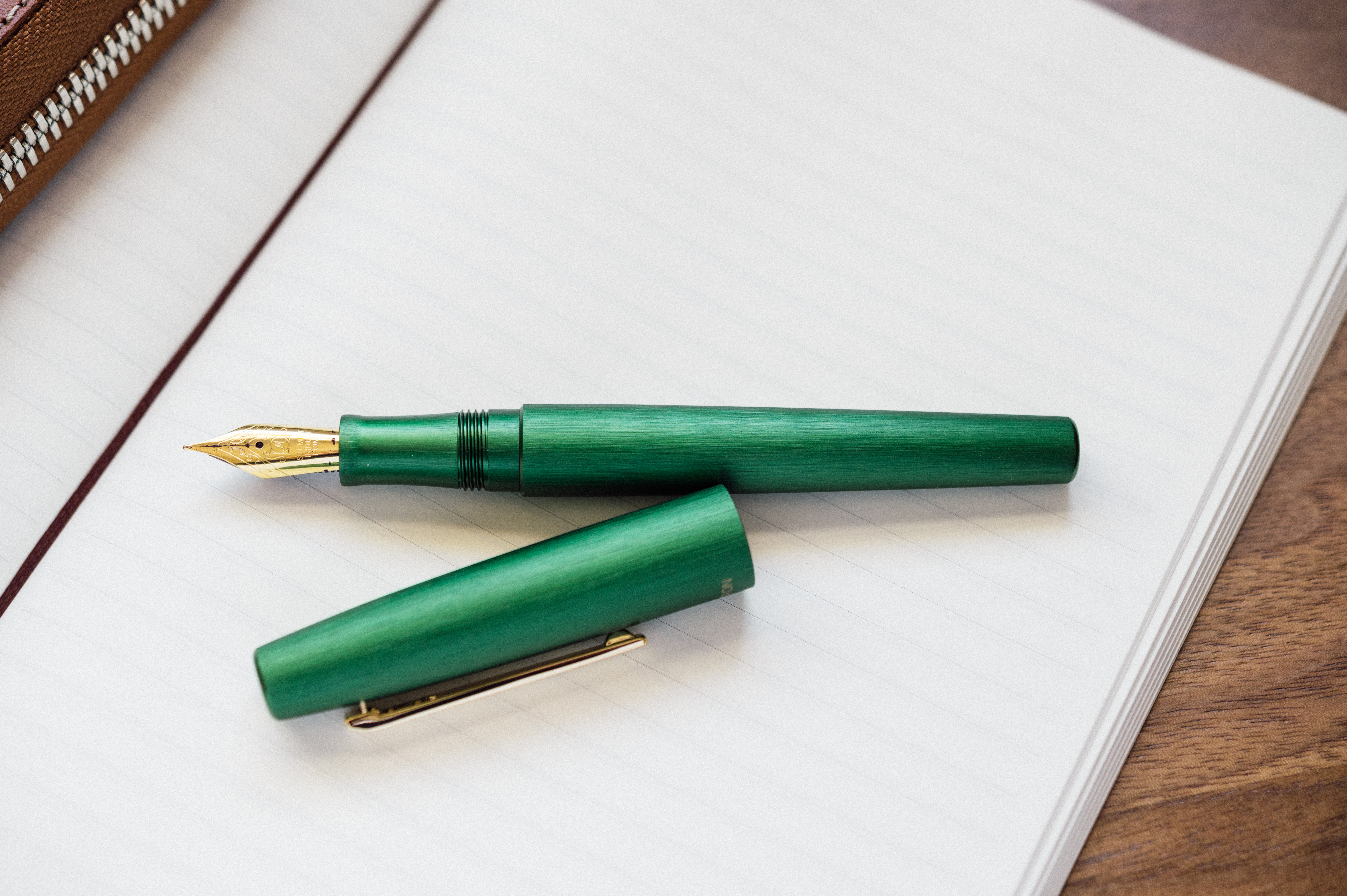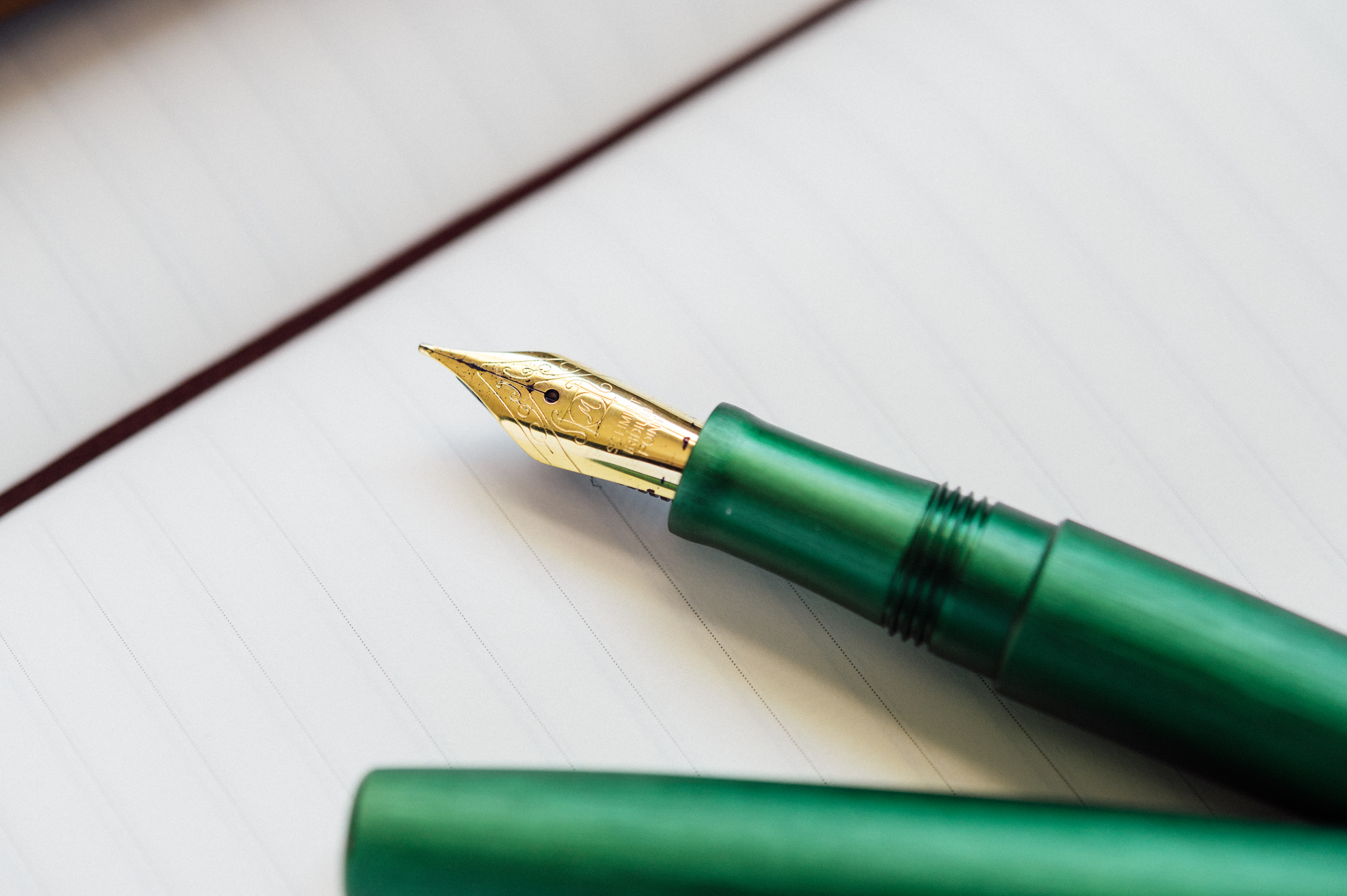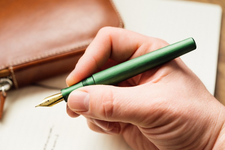 Esterbrook has tapped Schmidt for the nib, feed, and filling system. The nib itself is gold in color, but steel in construction. I’ve never had a problem with a Schmidt nib, and the one featured in this pen is no exception. Filling it with ink is a straightforward affair, and it writes just as expected. Smooth and silky on the paper with a medium ink flow. The internal cap sealing mechanism does a great job of keeping the nib from drying out, so it’s ready to write as soon as you take off the cap. I’ve loaded mine up with Diamine’s Evergreen, and the green pen with green ink is a pleasure to write with.