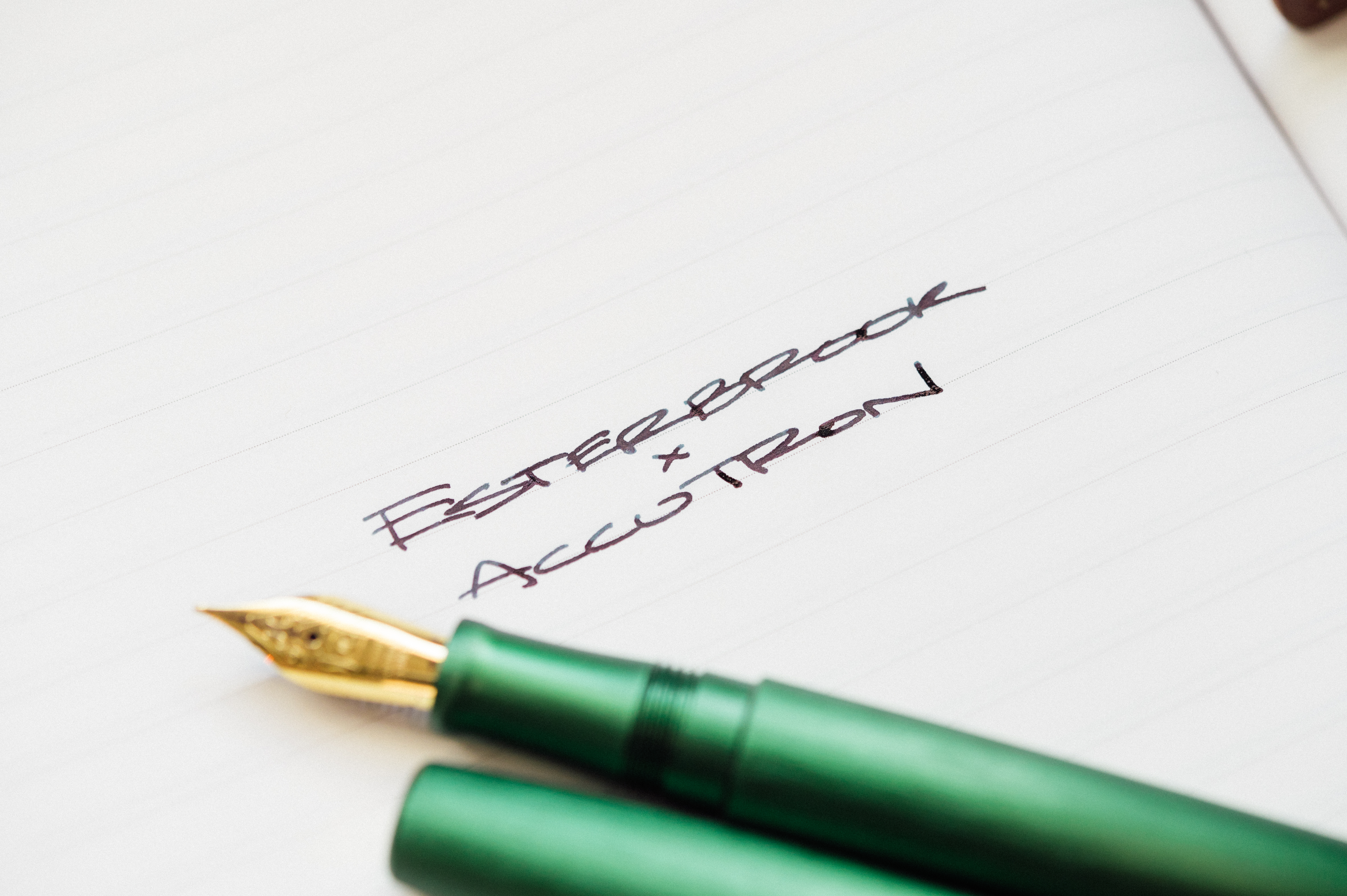 If you were to jump into a time machine, and head back to the 1960s, there’s a good chance you’d find two things. An Accutron watch on someone’s wrist, and an Esterbrook pen on their desk. After Accutron’s boom in the 60s and 70s, they more or less got crushed by the quartz watch revolution, got sold around to a few different companies, and ended up going dormant for a decade or two. Sound familiar? Esterbrook had that same fate. Thankfully, both brands have landed in the hands of people who care about the heritage and quality of the products, and both of whom have relaunched the brands. In 2019, we saw the re-introduction of Accutron watches (now ran by Citizen) with the Spaceview and DNA, both boasting a brand new type of movement. Somewhere between mechanical and quartz (just like the original tuning fork movement) lies the new and exciting electrostatic movement. Powered by the movement of your wrist, a rotor spins electrostatic generators, which in turn charge a capacitor, which then go on to power the watch. If you’re interested in learning more about the Accutron, you can read my lengthy review of the watch over at Worn and Wound. Today, we’re talking about the Esterbrook fountain pen that’s been decked out to match the Accutron, and boy did they do a good job. Let’s take a closer look at this stunning brushed green fountain pen that honors both of these prominent mid-century brands.