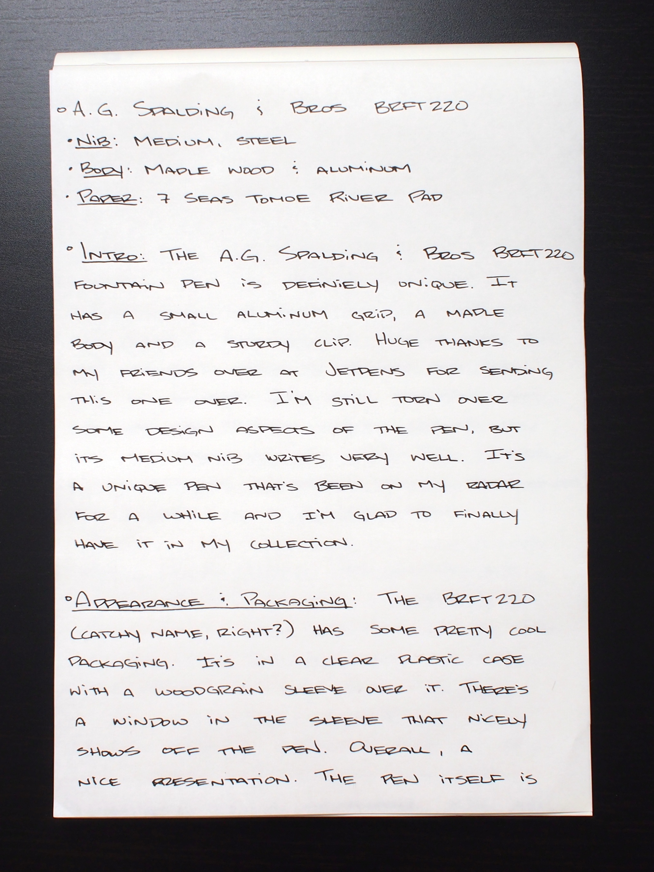 A.G. Spalding & Bros BRFT220 Fountain Pen Review Handwritten