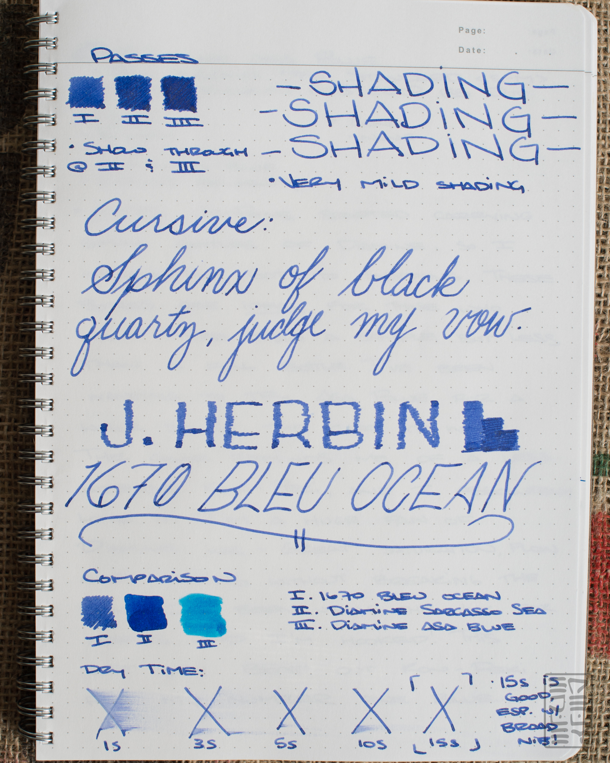 J. Herbin 1670 Bleu Ocean Fountain Pen Ink Review Sheen-6