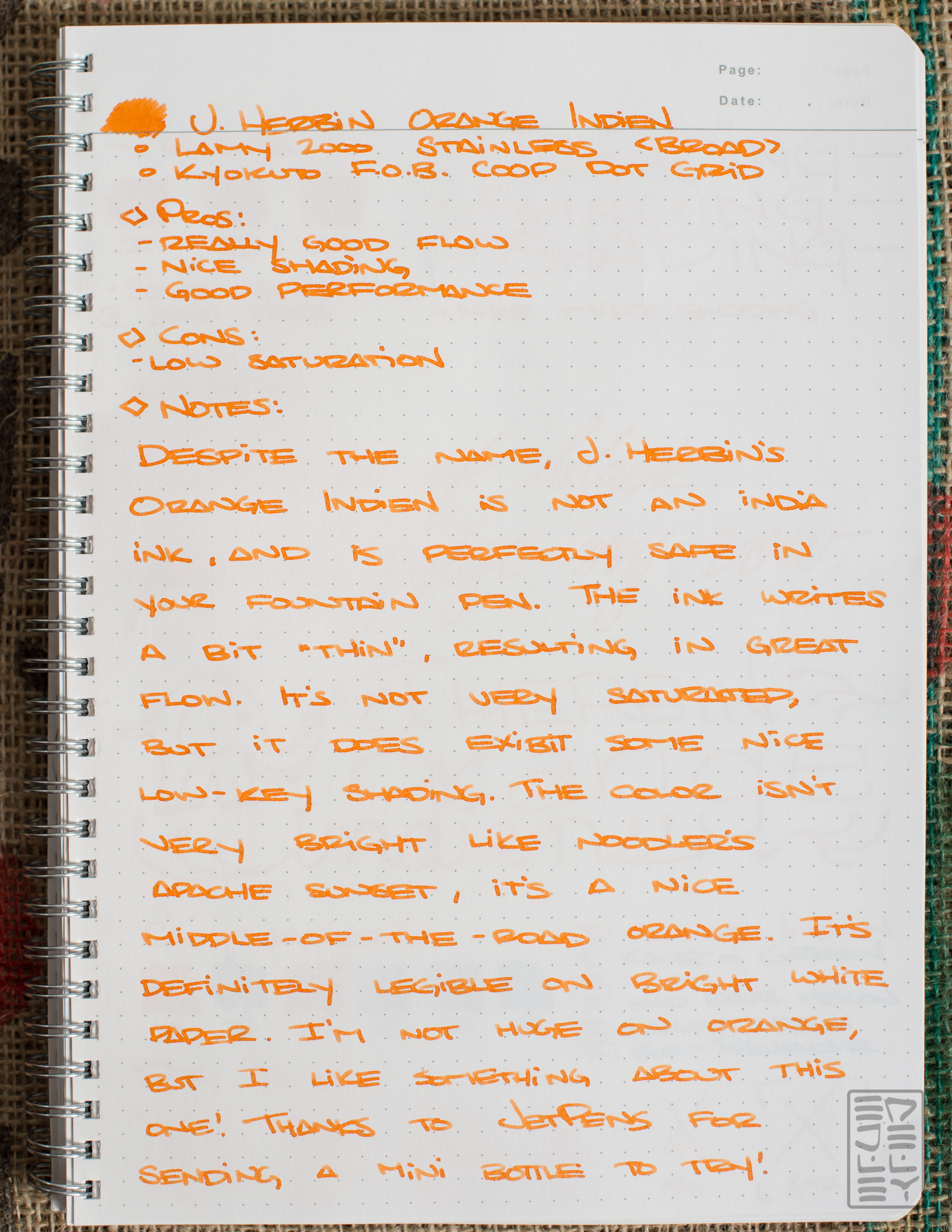 J. Herbin Orange Indien Fountain Pen Ink Review-1