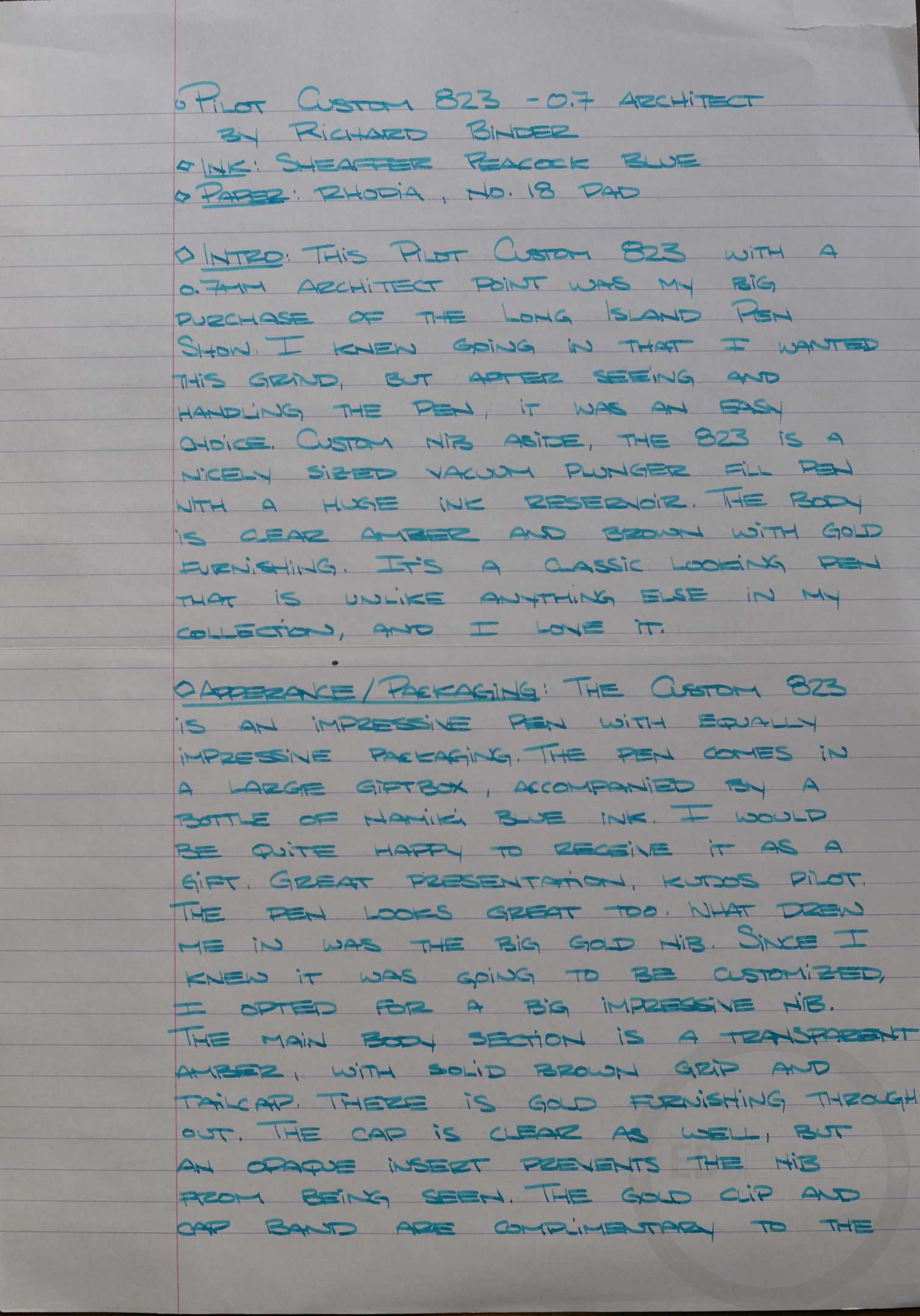 Pilot Custom 823 Fountain Pen Handwritten Review