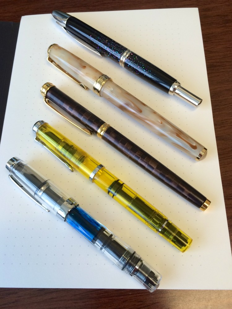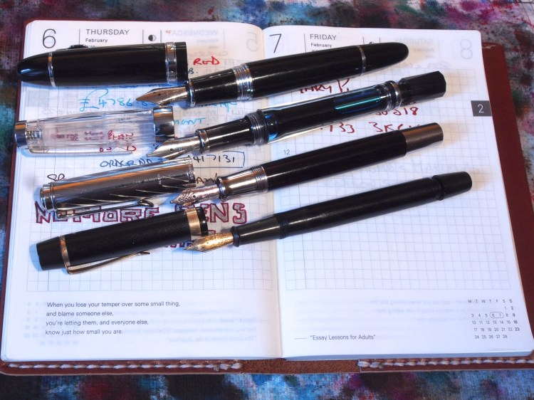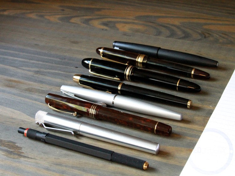 Left to Right: Rotring 800 Pencil – Pentel AIN HB lead, 0.5mm Karas Kustoms Render K – Pilot Hi-Tec-C Refill – 0.4mm Omas Vintage Arco Celluloid – Medium nib, Iroshizuku Tsuki-Yo Sheaffer Taranis – Medium nib, Iroshizuku Kon-Peki Parker IM – Medium nib, Noodler’s Cayenne Montblanc Meisterstuck No. 149 – Medium nib, Montblanc Mystery Black Pilot Custom 823 – 0.7mm […]